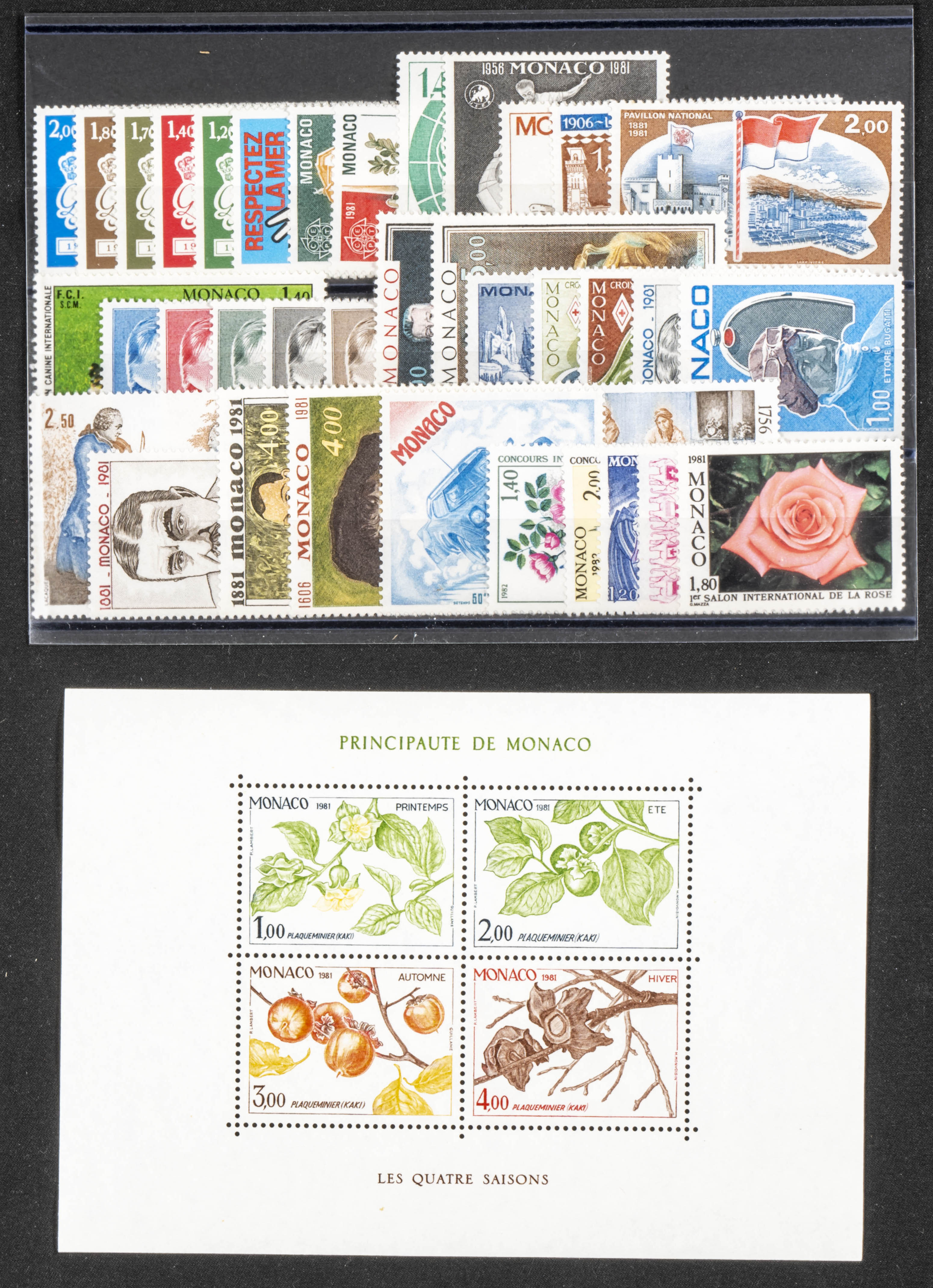 ★★Yvert 1264/05(25). 1981. Set of twenty-five complete 1981 (regular mail only and including block sheet stamps) from Monaco, in mint condition (mounted on tokens). TO EXAMINE. Yvert 2023: 2,800 Euros