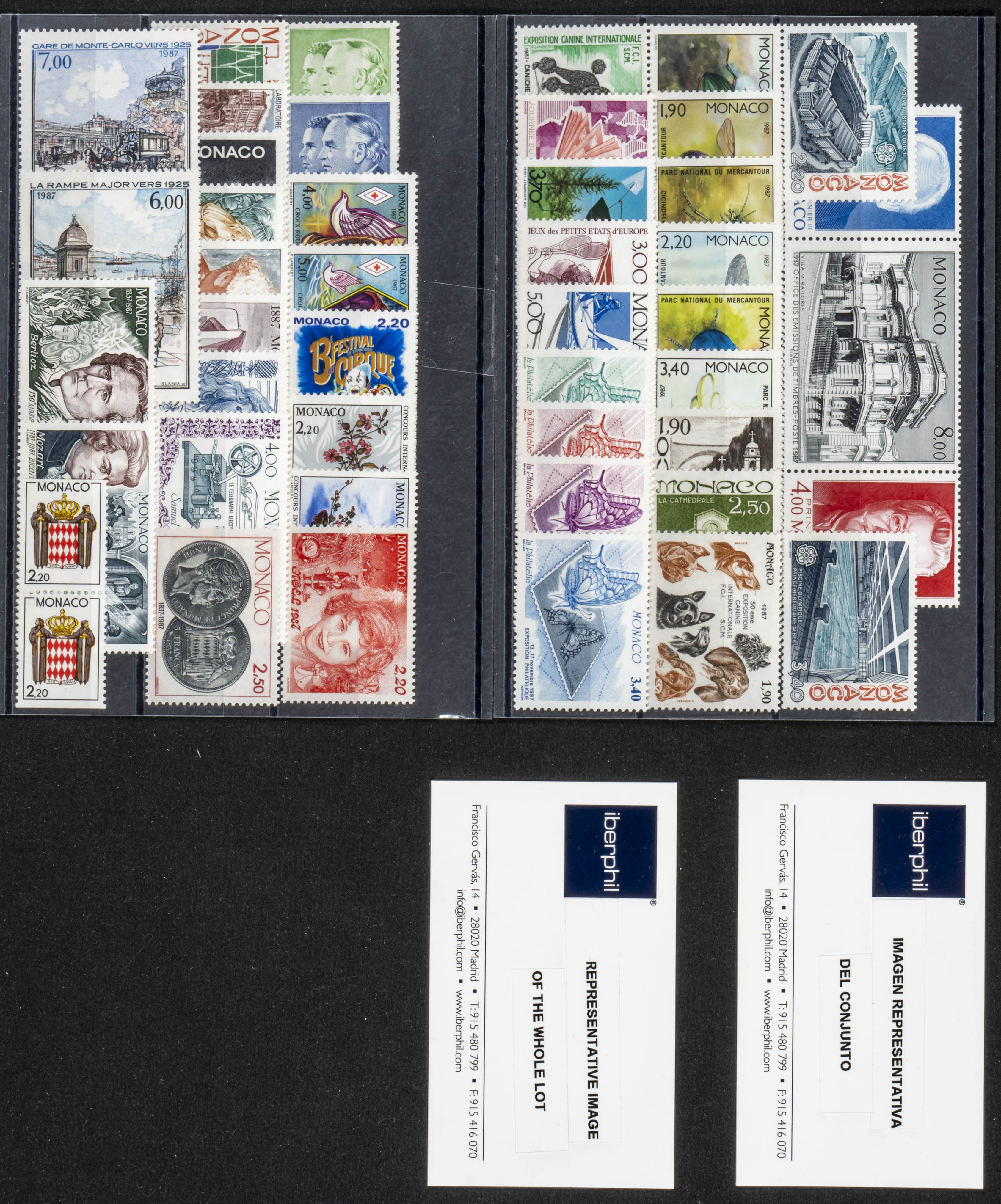 ★★Yvert 1562/13(8). 1987. Set of eight complete years 1987 (regular mail only and no block sheet stamp) from Monaco, in mint condition (mounted on tokens). TO EXAMINE. Yvert 2023: 854 Euros