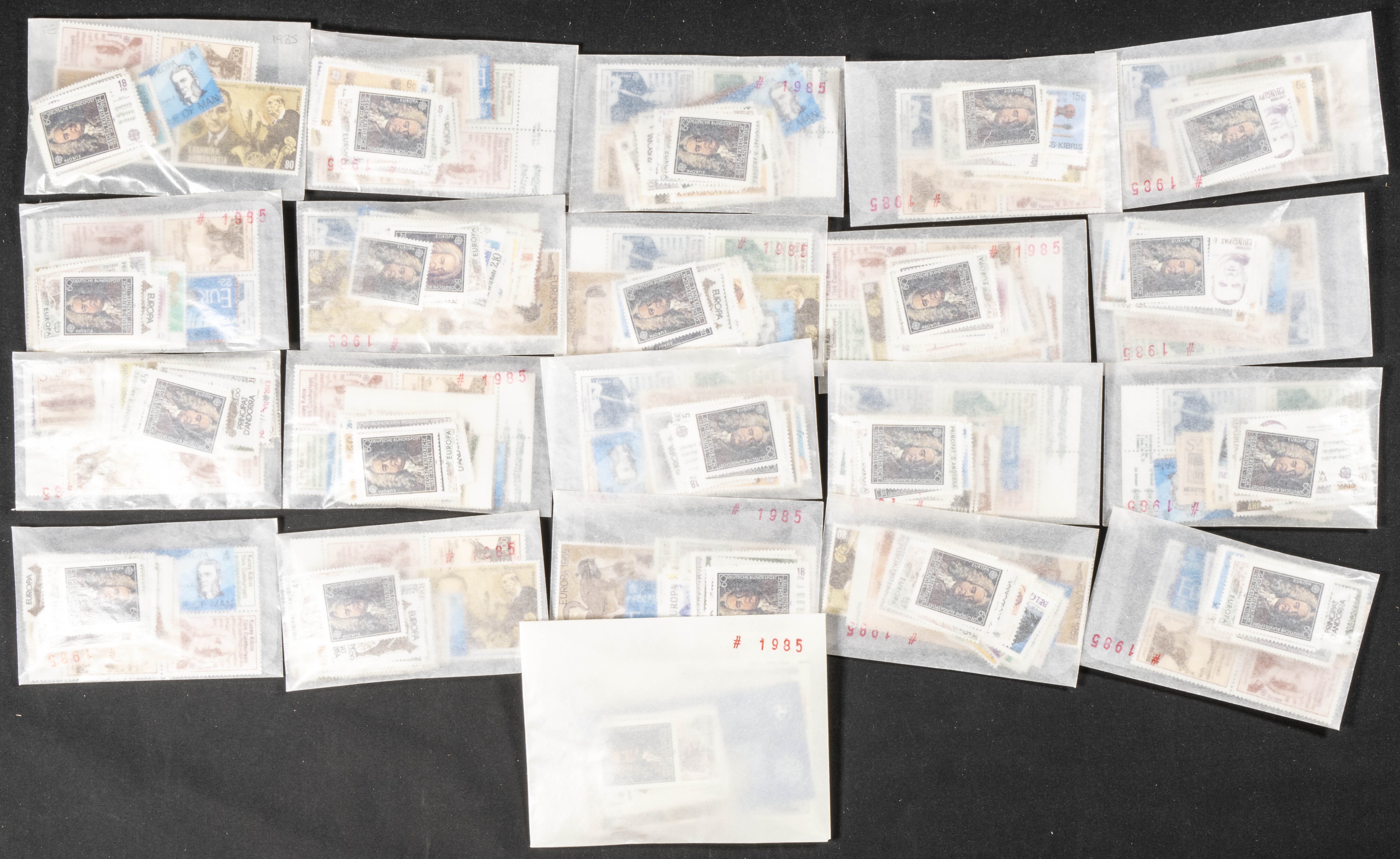 ★★1985. Conjunto de veintiún años completos del Tema Europa 1985 sin hojas bloque (sólo sellos) organizados en sobres de cristal, en nuevo. A EXAMINAR. Yvert 2016: 4.137 Euros
