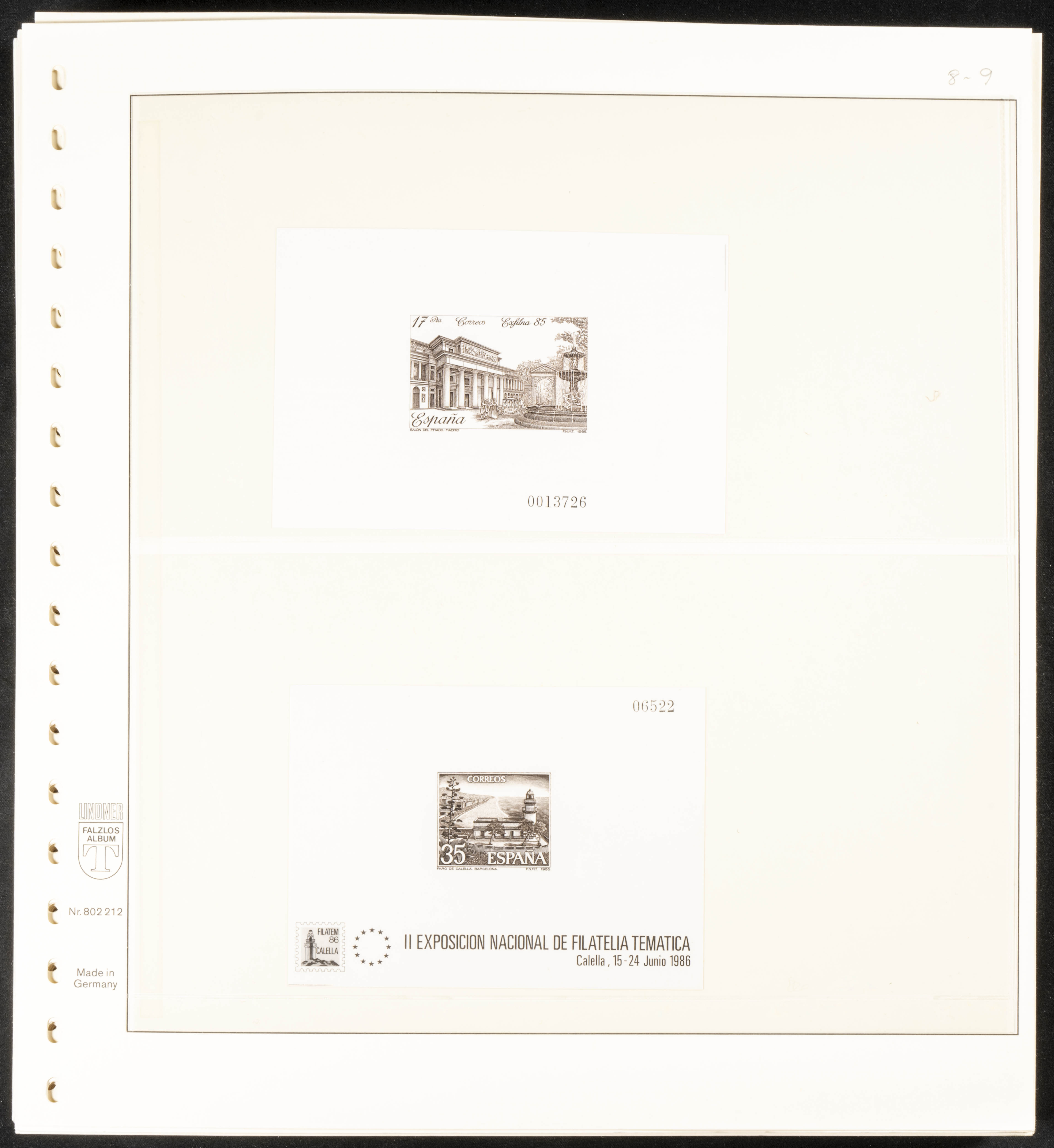 ★★(1975ca). Interesting complete collection of Luxury Tests between 1975 and 2016, obviously including Calella, Autonomies, Carnet del Rey and 150th Anniversary of the Spanish Stamp, in addition to the two Boat tests. TO EXAMINE. Edifil 2024: +3,675 Euros