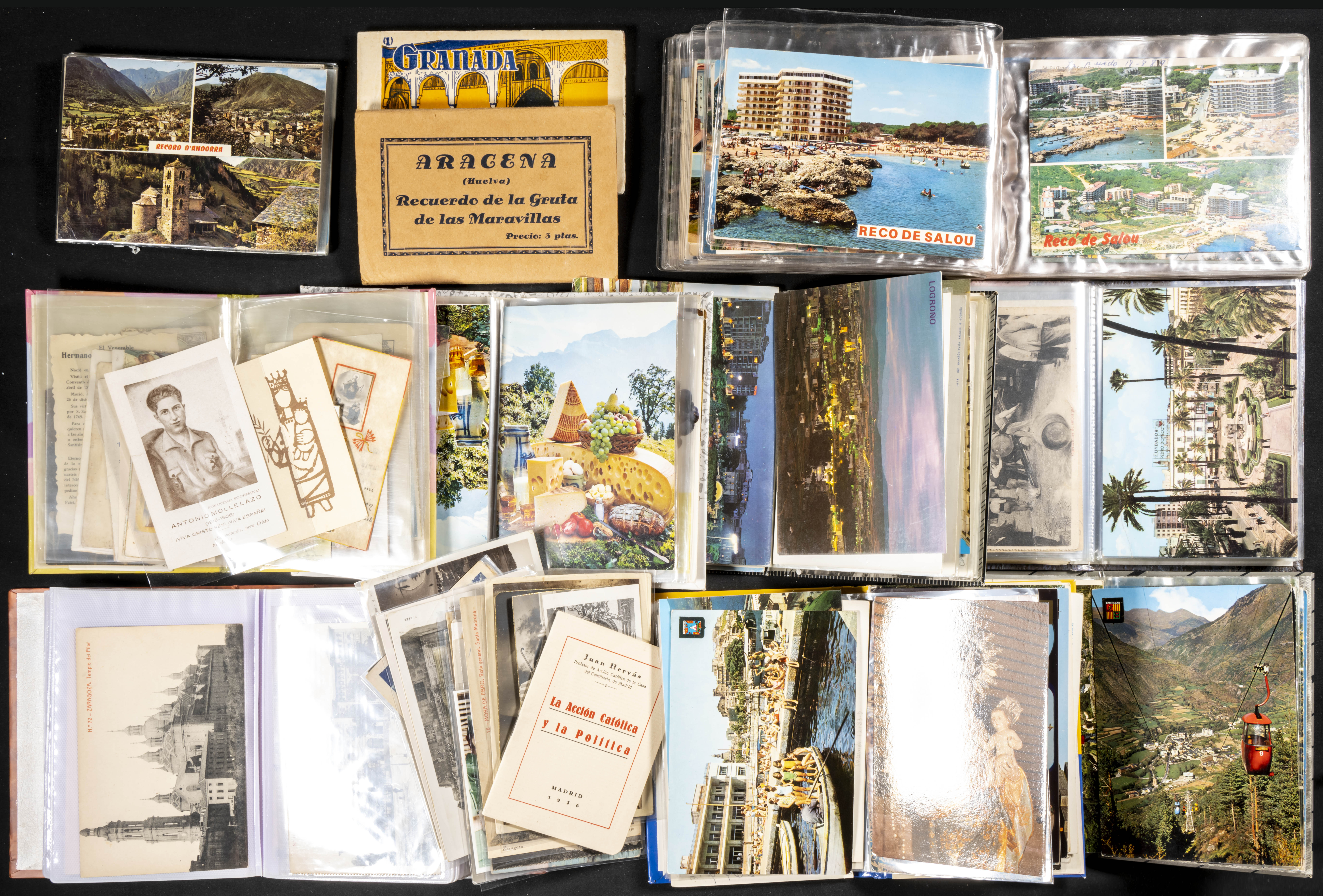 (1910ca). Set of thousands of Tourist Postcards (some circulated) between 1910 and 1970, some organized by themes or provinces, includes cards from Andorra and about one hundred foreign cards. TO EXAMINE.