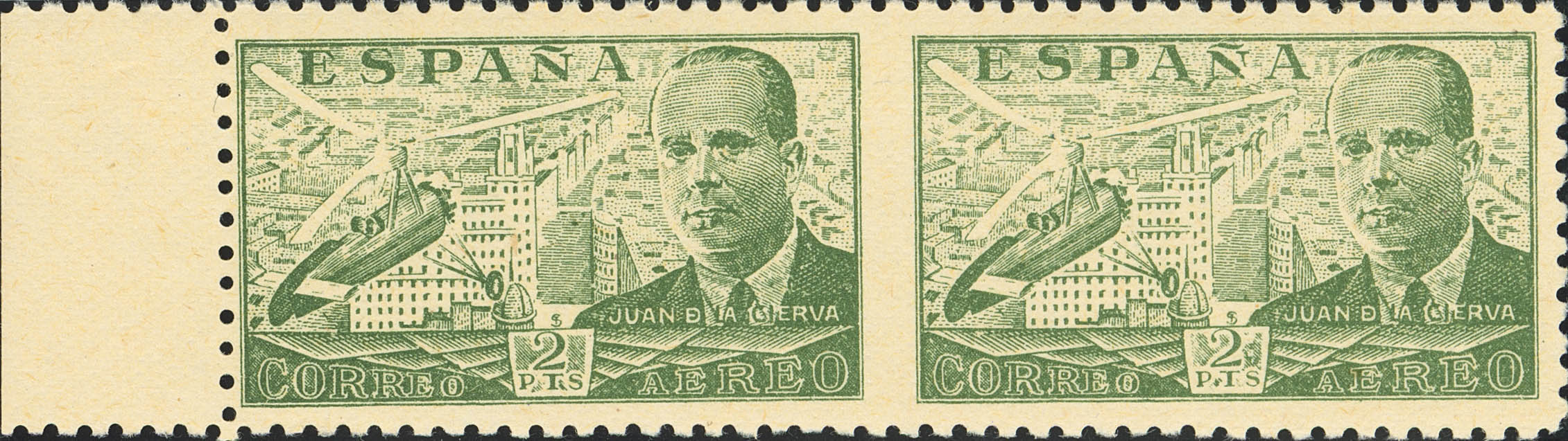 ★★ 945. 1941. 2 pts green, pair, leaf edge. IMPERFORATED BETWEEN THE STAMPS. MAGNIFICENT AND VERY RARE, NOT CATALOGED.