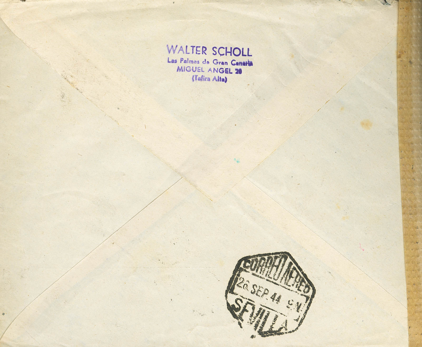 |ENVELOPE| 975. 1944. 40 cts chestnut, various values. Airmail LAS PALMAS to PASING-OBERMENZING (GERMANY). Arrivals at the front. MAGNIFICENT AND SPECTACULAR.