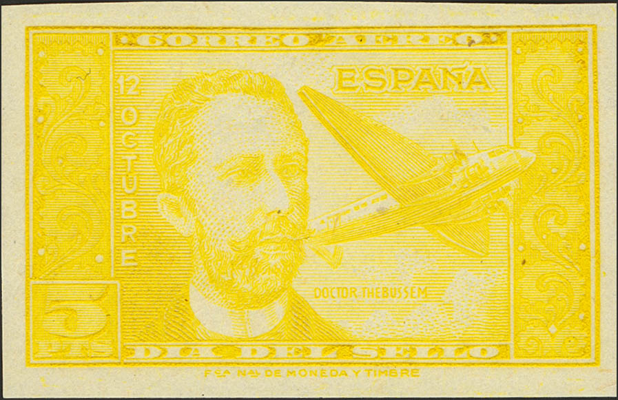 English ★★ 983ccs. 1944. 5 pts yellow. COLOR CHANGE and IMPERFORATED. MAGNIFICENT AND RARE. Cert. COMEX. Edifil 2020: 565 Euros