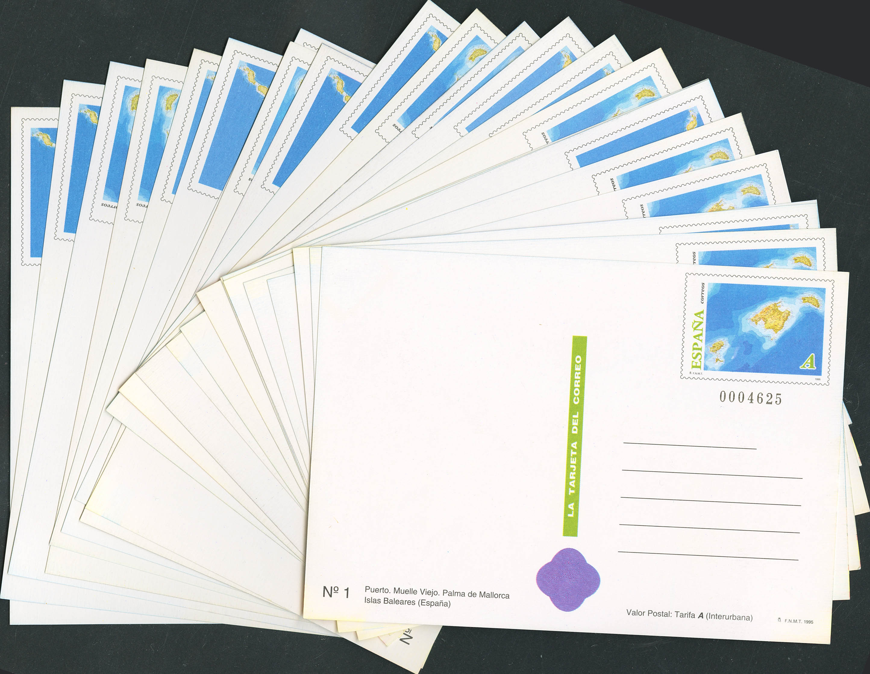 (★) EP1/24. 1995. Juego completo LAS TARJETAS DEL CORREO. Canarias y Baleares (veinticuatro tarjetas). MAGNIFICAS. Edifil 2024: 200 Euros