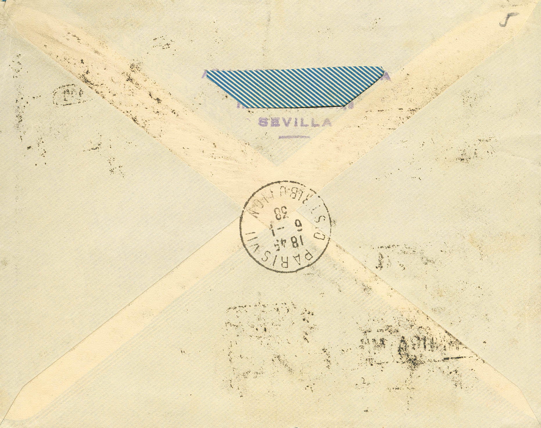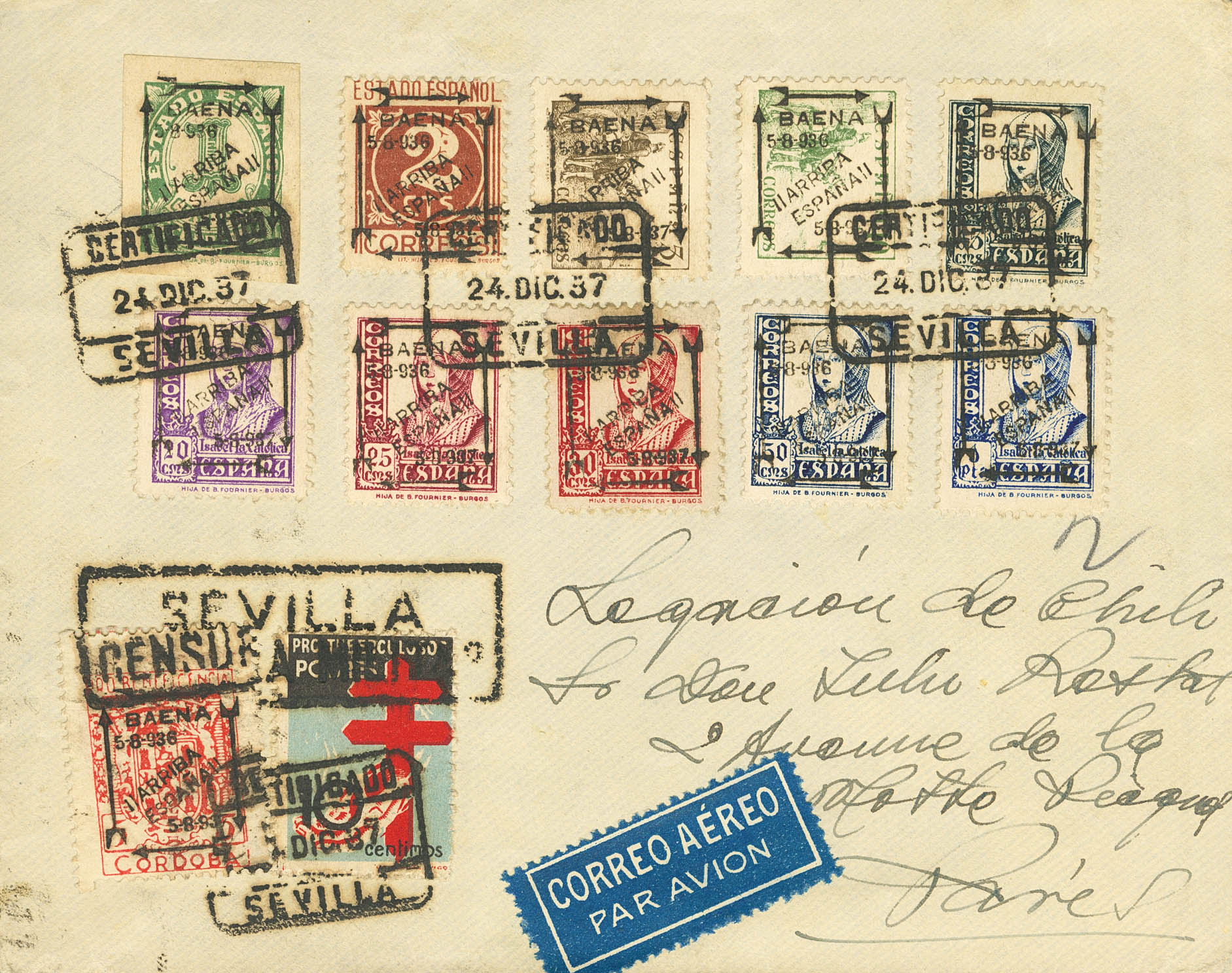 1/10. 1937. Complete series. SEVILLE to PARIS (FRANCE). Arrival on the back. MAGNIFICENT. Edifil 2017: 50 Euros