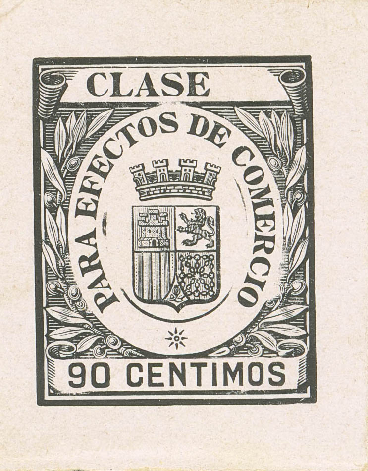 (★)1932. 90 cts negro EFECTOS DE COMERCIO (sin cifra de clase). PRUEBA DE PUNZON. MAGNIFICA Y RARA. (Alemany P-1)