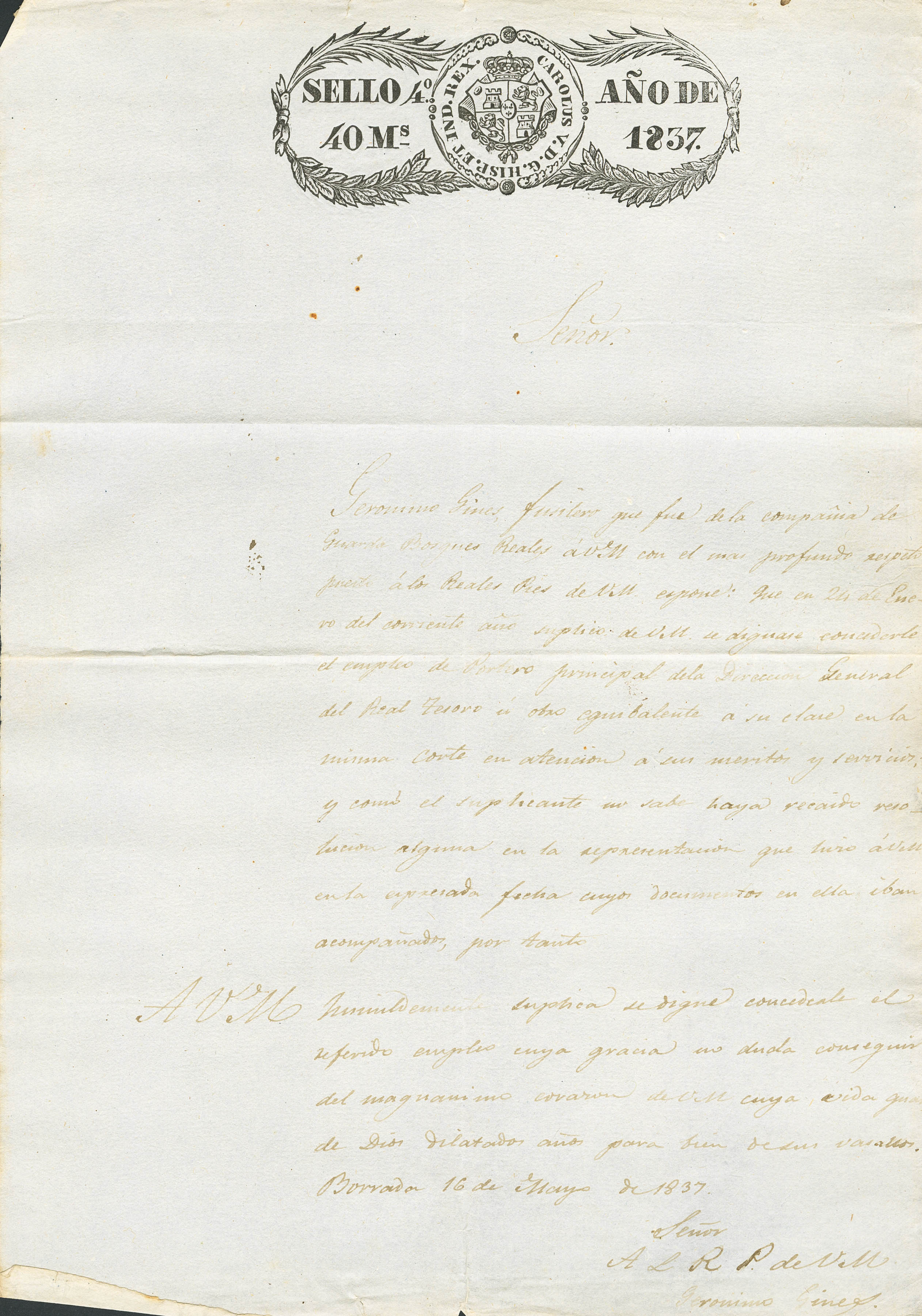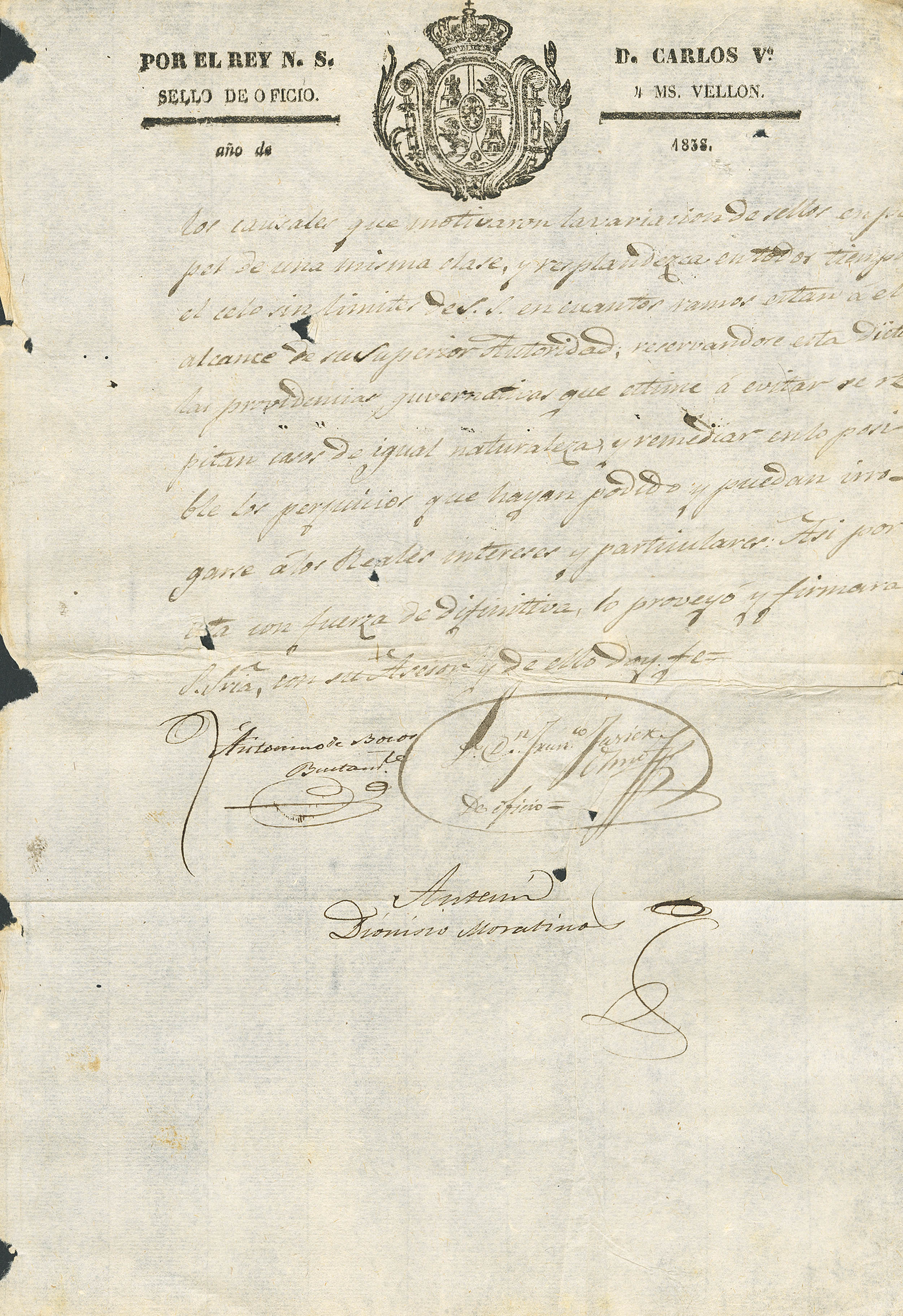 |ENVELOPE|1837. Set of two SEALED PAPER documents from the Carlist Period, one from 1837 of 40 maravedís and another from 1838 of 4 maravedís. MAGNIFICENT AND VERY RARE.