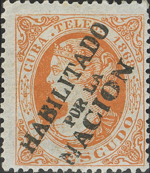 ★ 6A. 1869. 1 orange shield. ENABLED / BY THE / NATION. MAGNIFICENT. Edifil 2024: 135 Euros