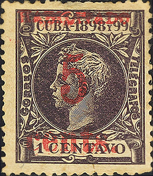 ★ 14A. 1898. 5 ctvos sobre 1 ctvo violeta (bonito centraje). 4ª tirada, posición 2. MAGNIFICO Y RARO. Cert. ECHENAGUSIA.