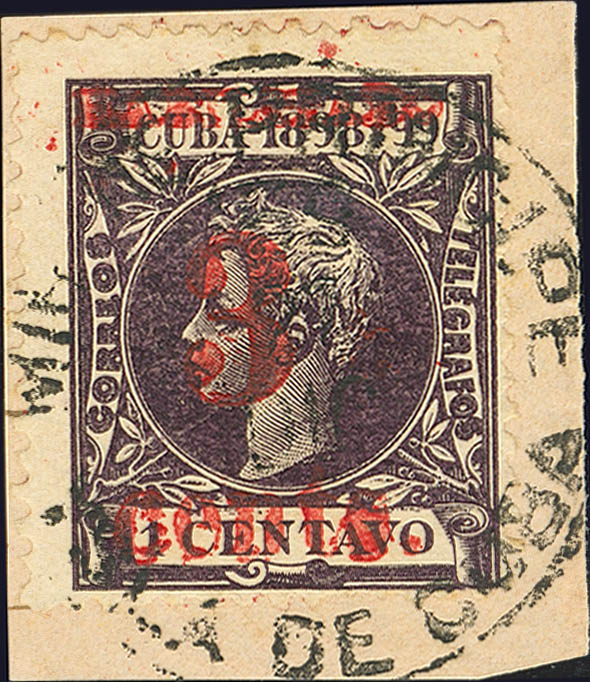 △ 13. 1899. 3 ctvos sobre 1 ctvo violeta, sobre fragmento. 4ª tirada, posición 3. MAGNIFICO Y RARO. Cert. ECHENAGUSIA.