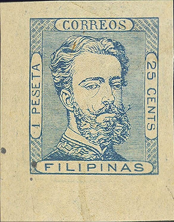 ★ 29P. 1872. 1´25 pts blue, corner of sheet. COLOR ESSAY. NICE AND VERY RARE. Ex-Antonio Cuesta.