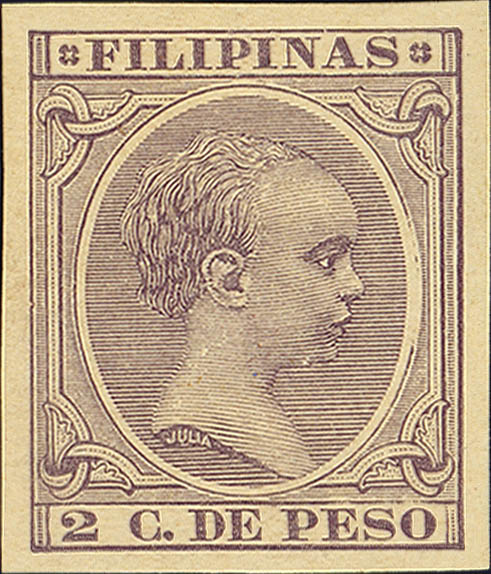 (★) 93s. 1891. 2 ctvos violeta castaño. SIN DENTAR. MAGNIFICO Y MUY RARO. Ex-Antonio Cuesta. Edifil 2024: 210 Euros