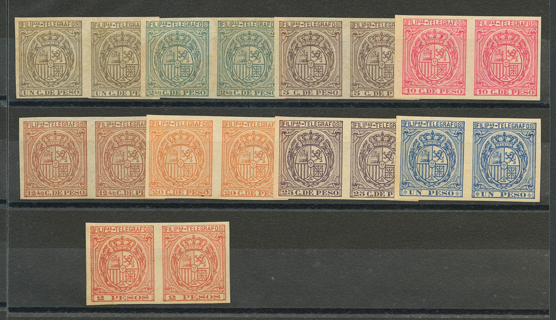 ★ 59/67s(2). 1896. 1 cent to 2 pesos (short series in pairs). IMPERFORATE. MAGNIFICENT AND RARE. Ex-Antonio Cuesta. Edifil 2018: 1,044 Euros