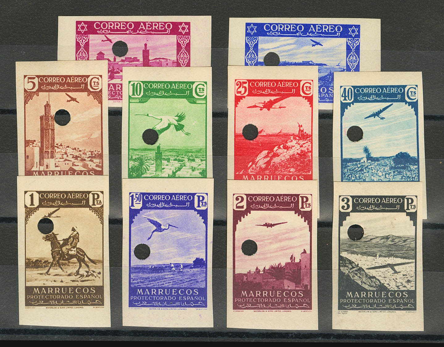 ★★ 186/95Mts. 1938. Complete series. UNDIERED and DRILLED. MAGNIFICENT. Edifil 2018: 330 Euros