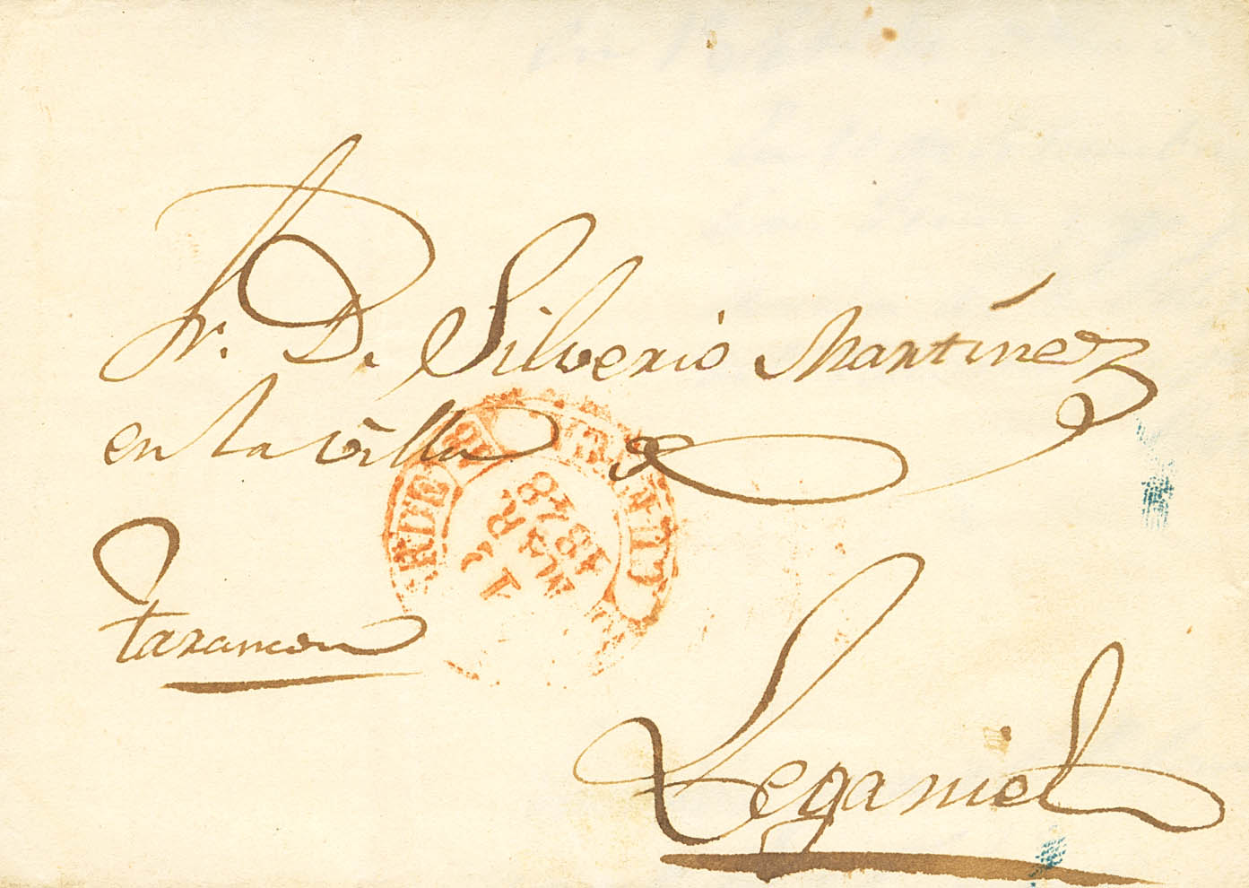 English 1848. VALERA DE ABAJO (CUENCA) to LEGANIEL. MAGNIFICENT AND VERY RARE.