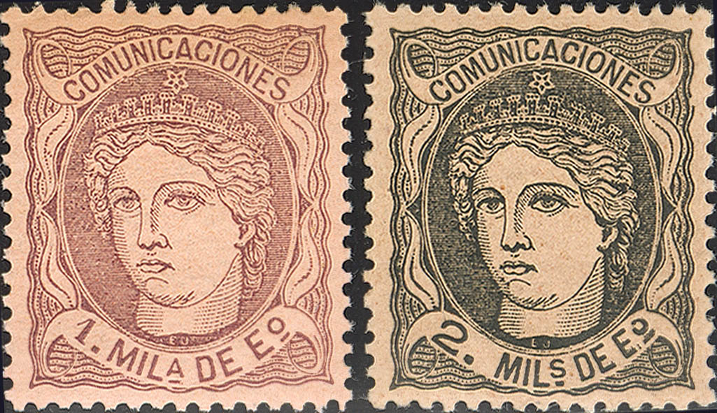 ★ 102, 103. 1870. 1 mil violet and 2 mil black. Well centered. MAGNIFICENT.