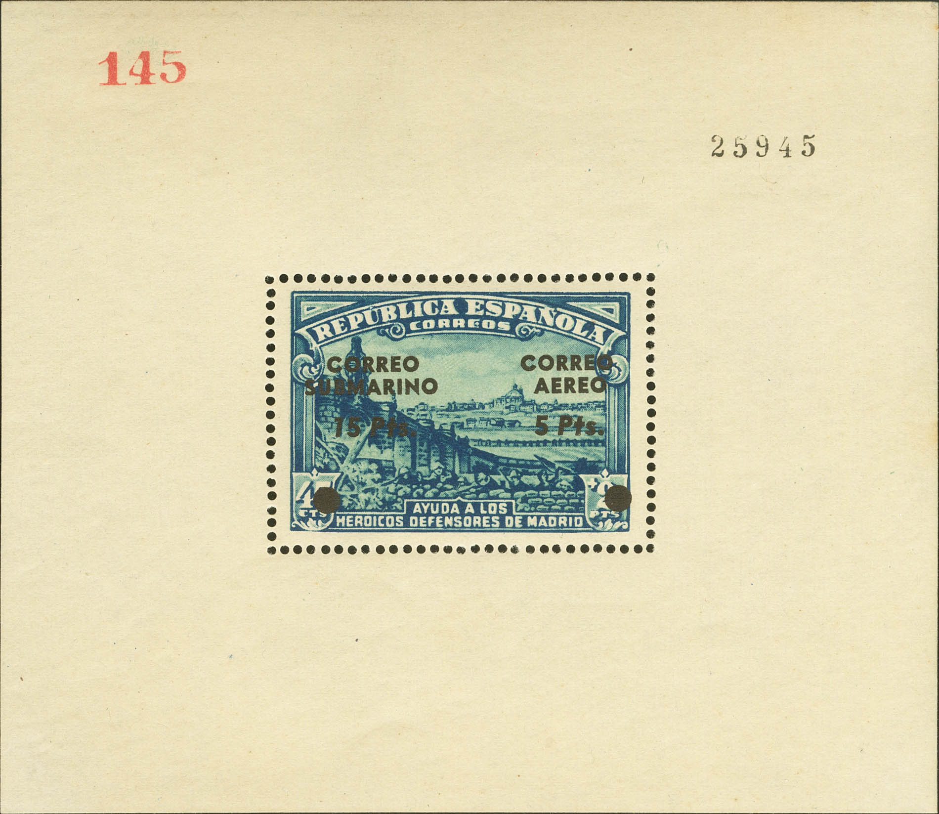 English ★ 758FN. 1938. Block sheet (normal condition). Original private authorization MAIL / SUBMARINE / 15 PTS / AIR MAIL / 5 PTS. MAGNIFICENT.