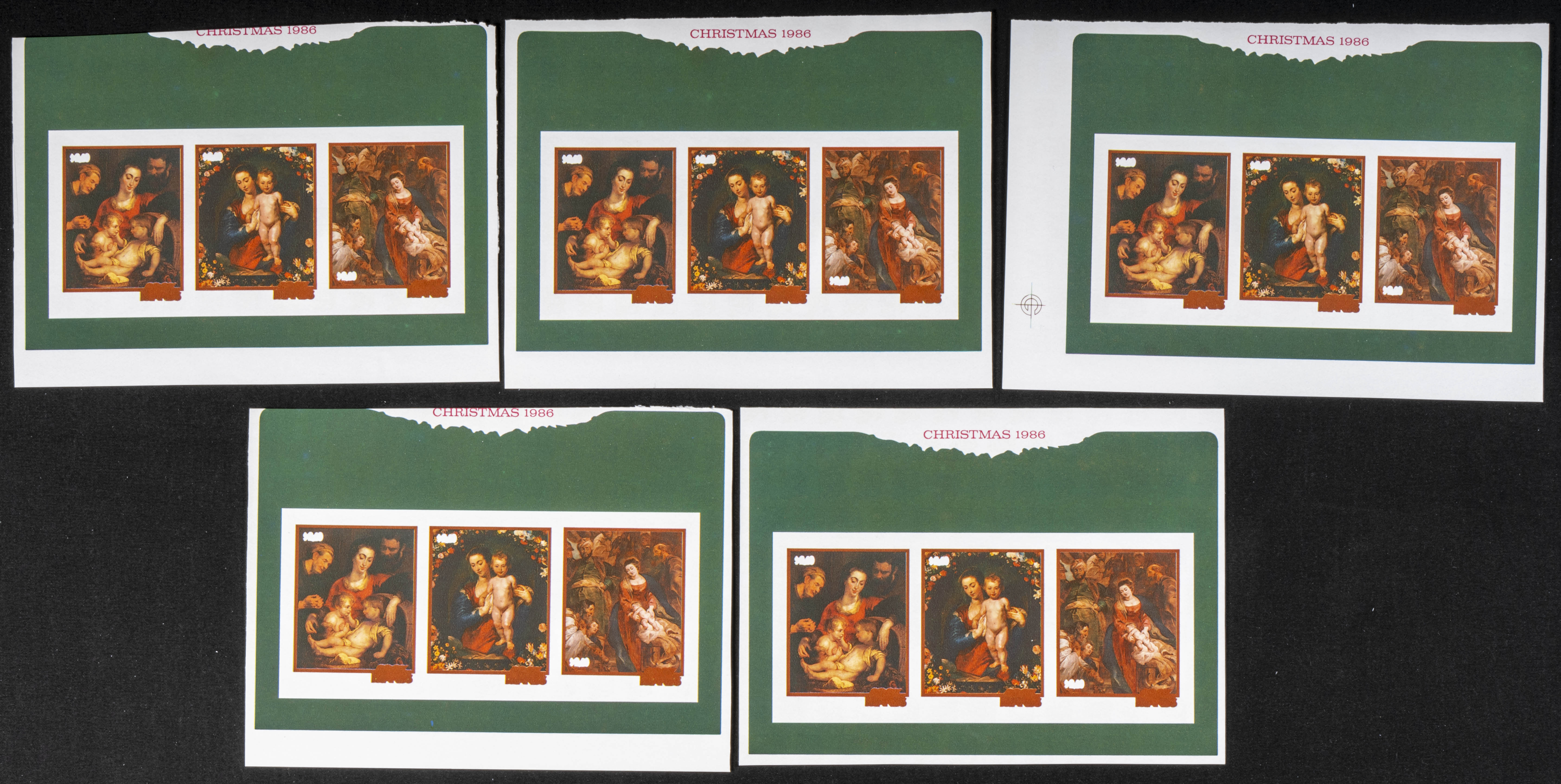 ★★Yvert B173. 1986. Christmas, Rubens. Group of progressive plate proofs of the set. TO EXAM.