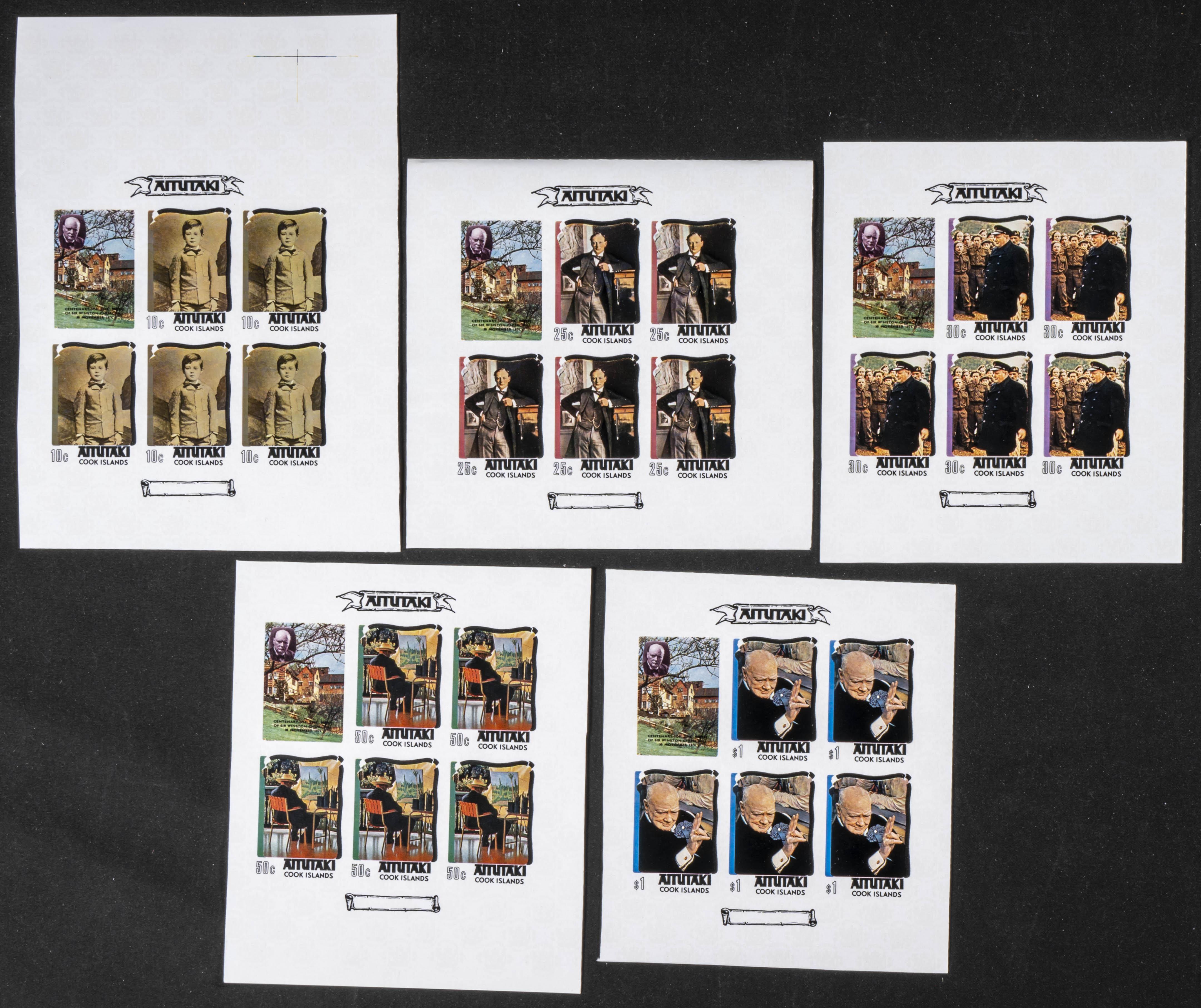★★Yvert 121/25. 1974. Sir Winston Churchill. Group of progressive plate proofs of the set. TO EXAM.