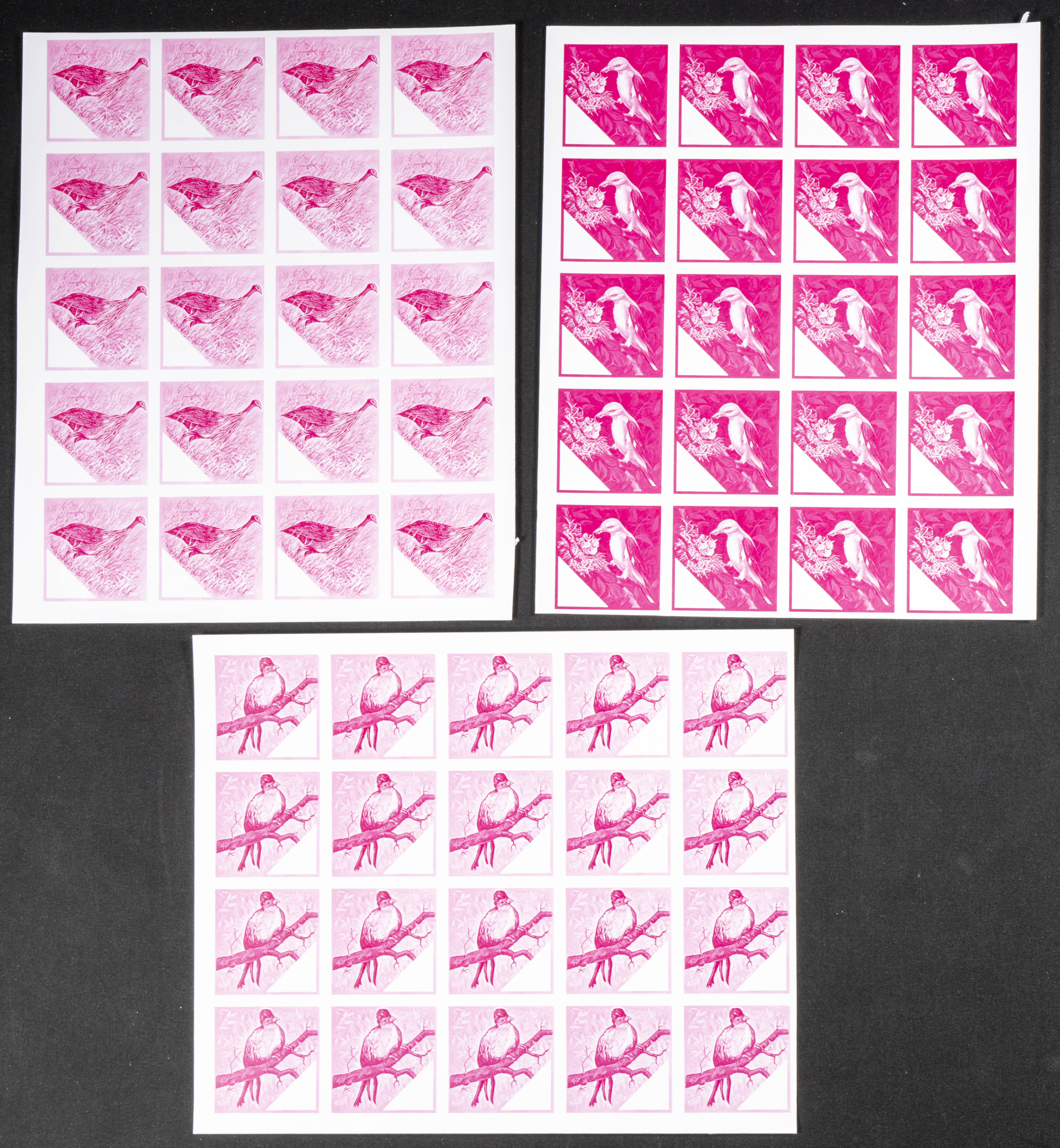 ★★Yvert A97/99. 1971. Birds. Group of progressive plate proofs of the set. TO EXAM.
