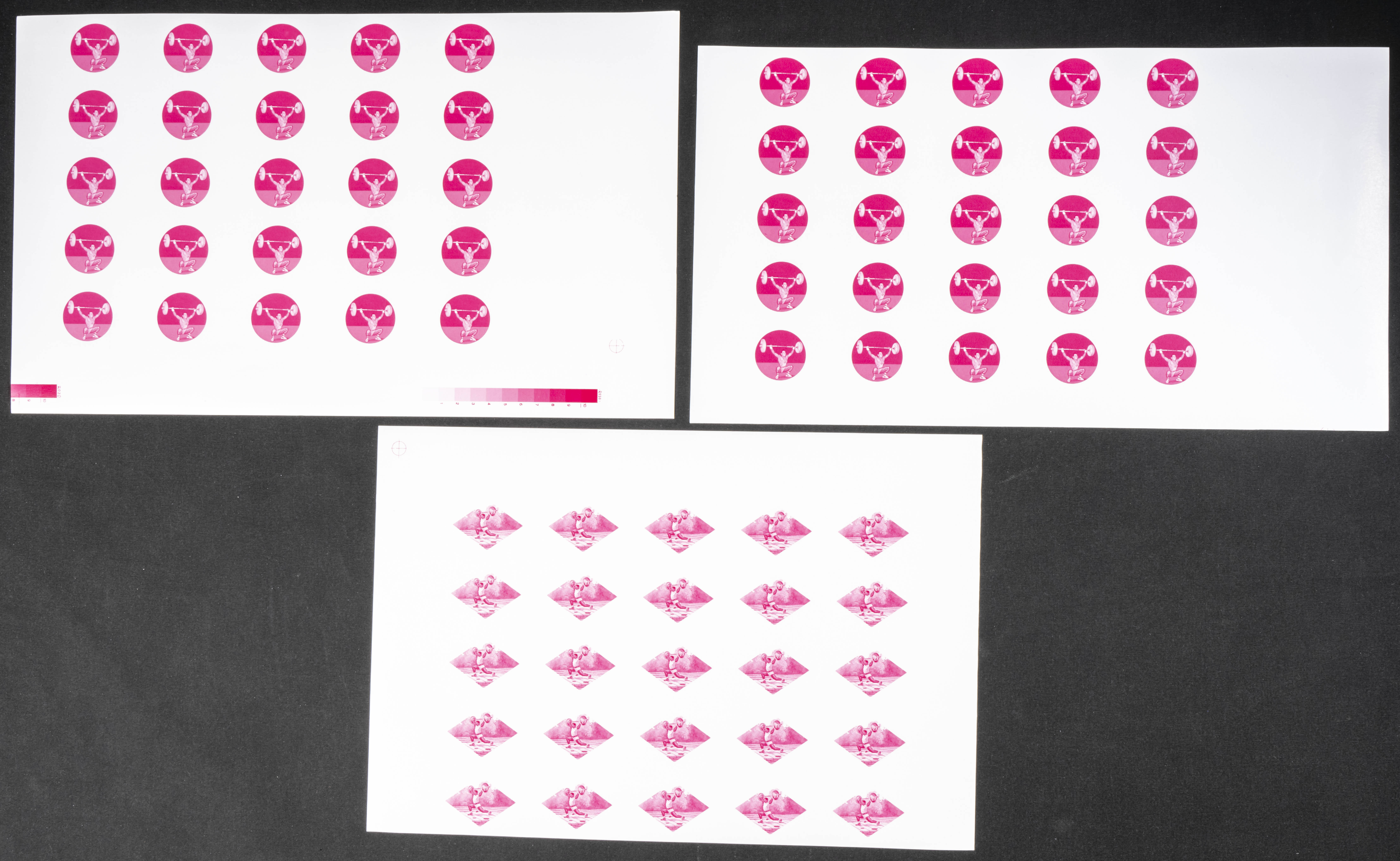 ★★Yvert 823/24. 1977. Weight lifting championship. Group of progressive plate proofs of the set. TO EXAM.