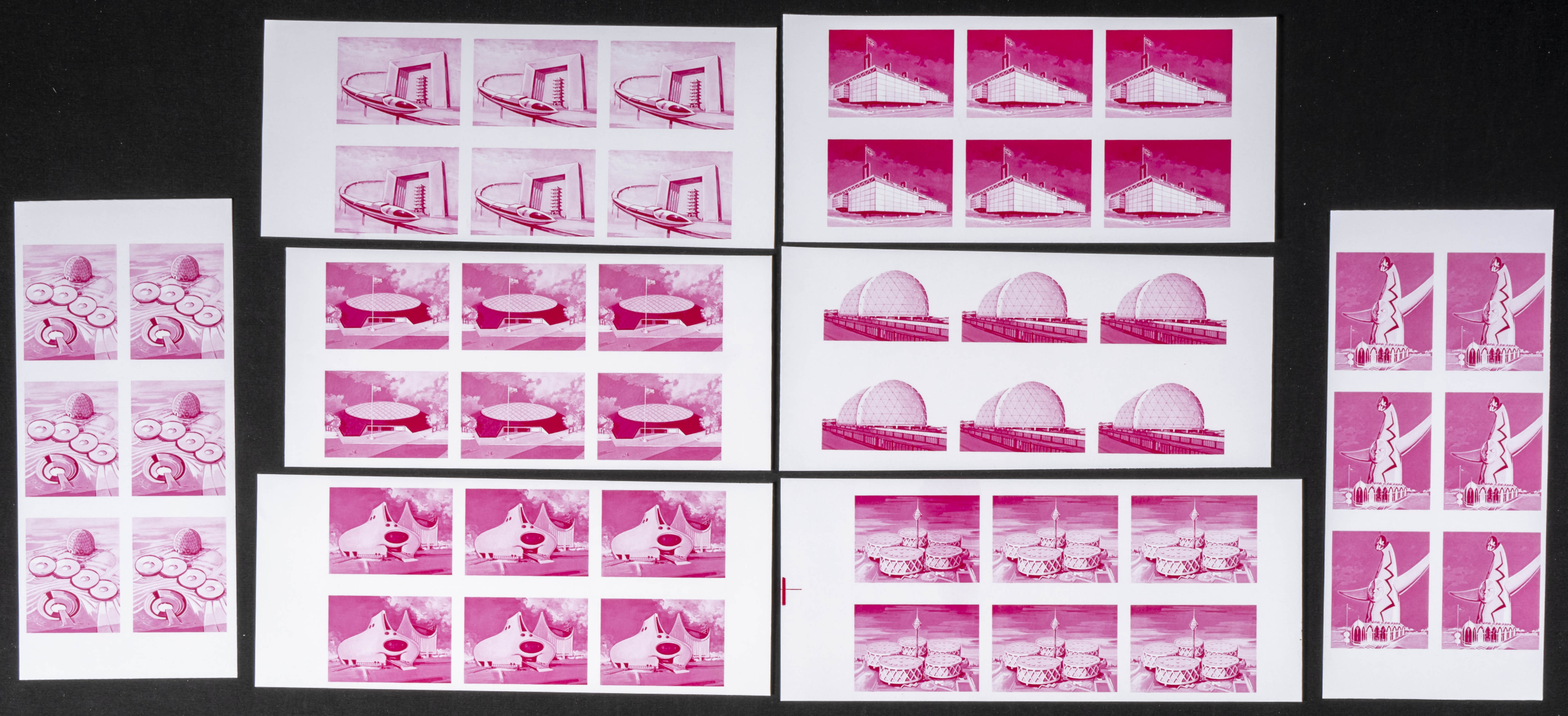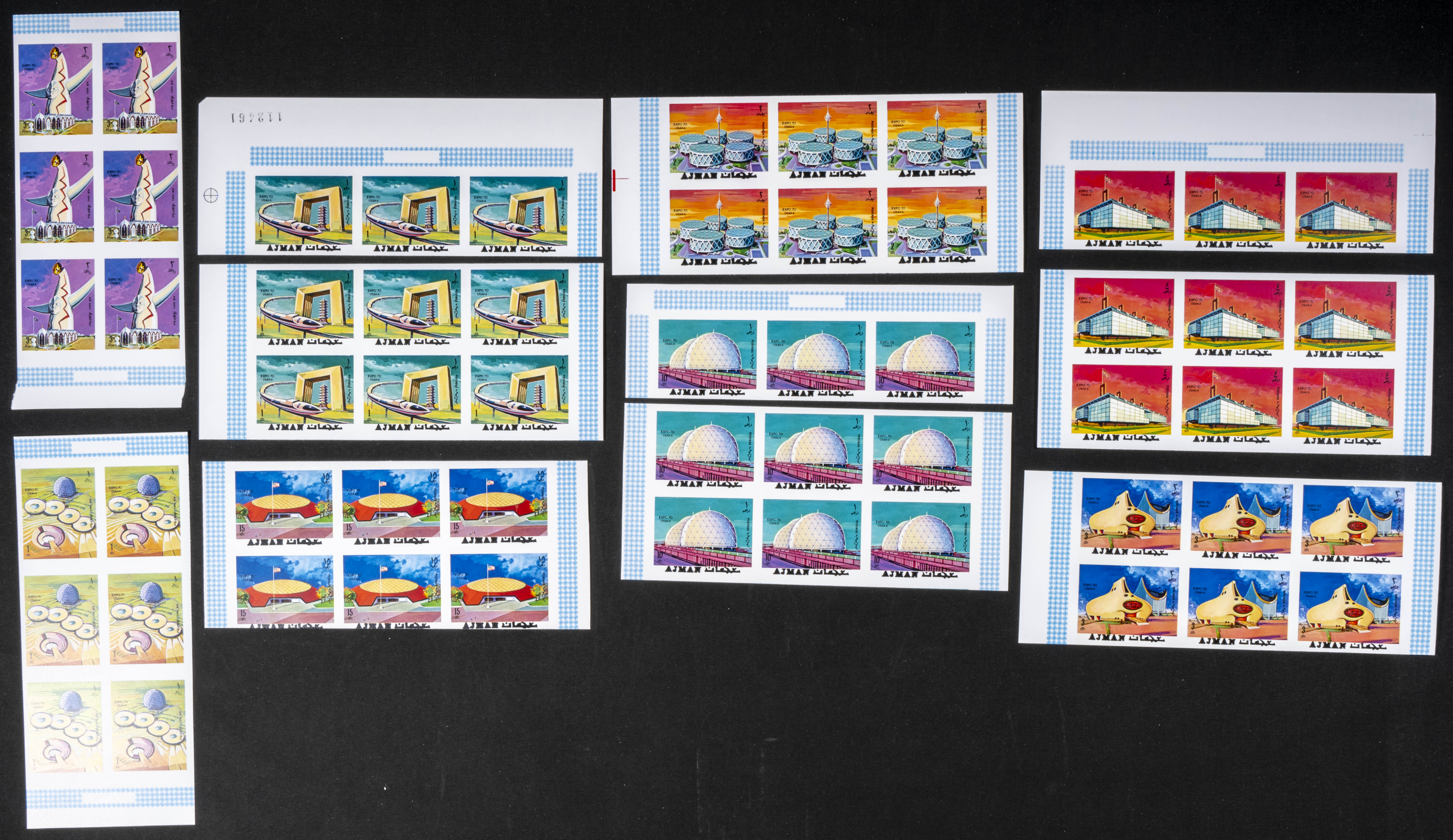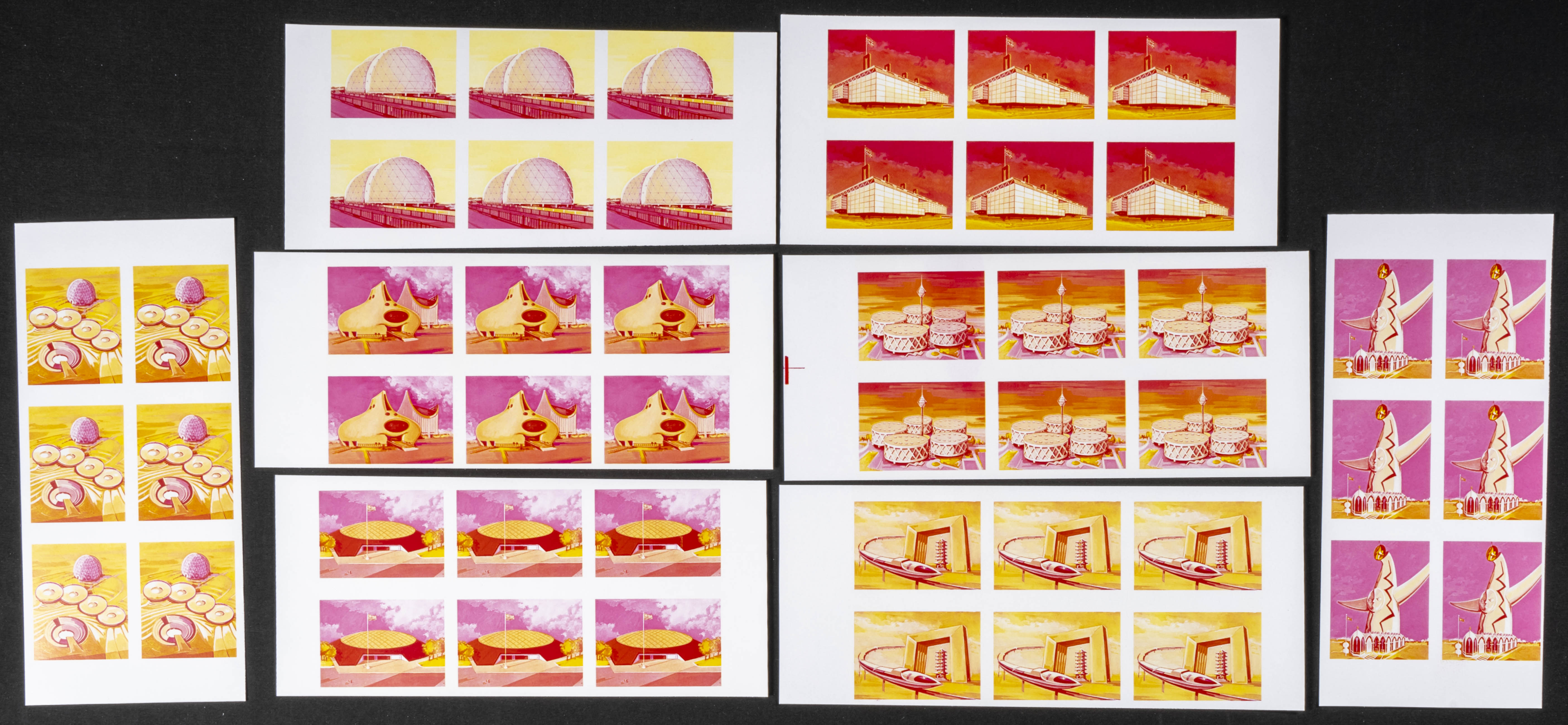 ★★ . 1970. Expo Osaka. Group of progressive plate proofs of the set. (Michel: 577/84). TO EXAM.
