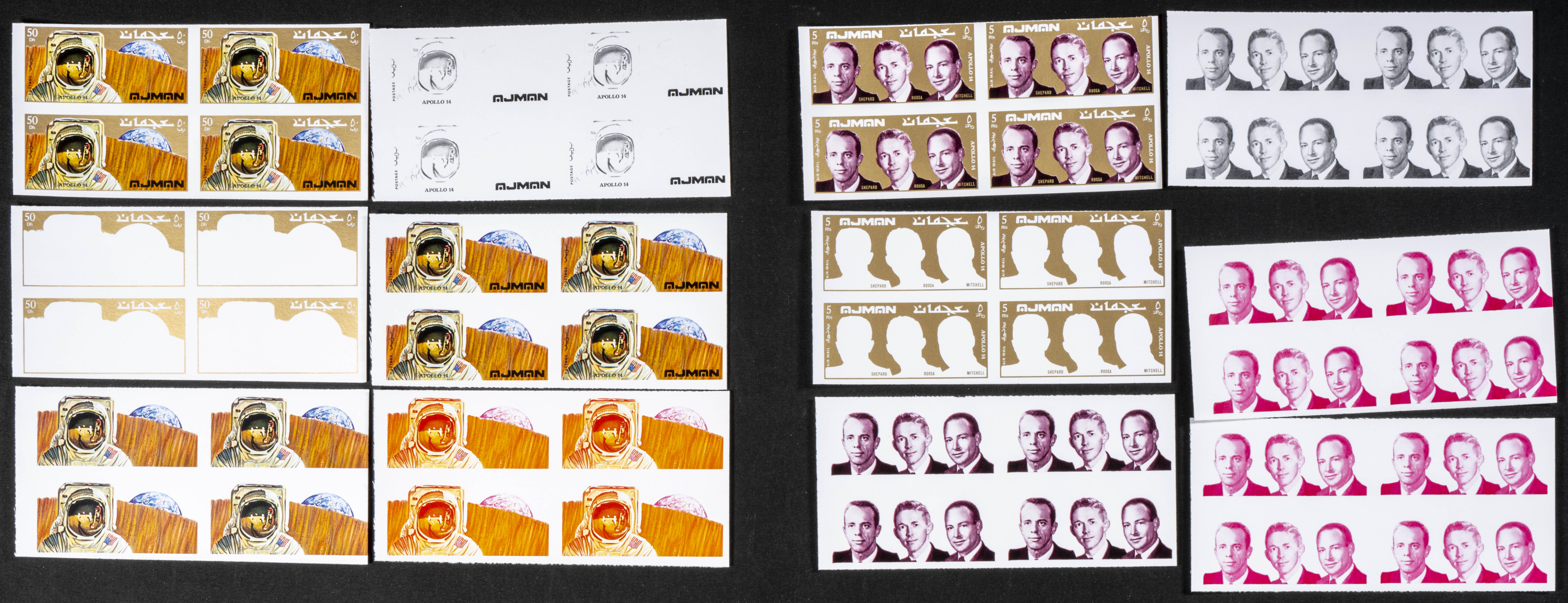 ★★ . 1971. Apollo 14. Group of progressive plate proofs of the set. (Michel: 755/60). TO EXAM.