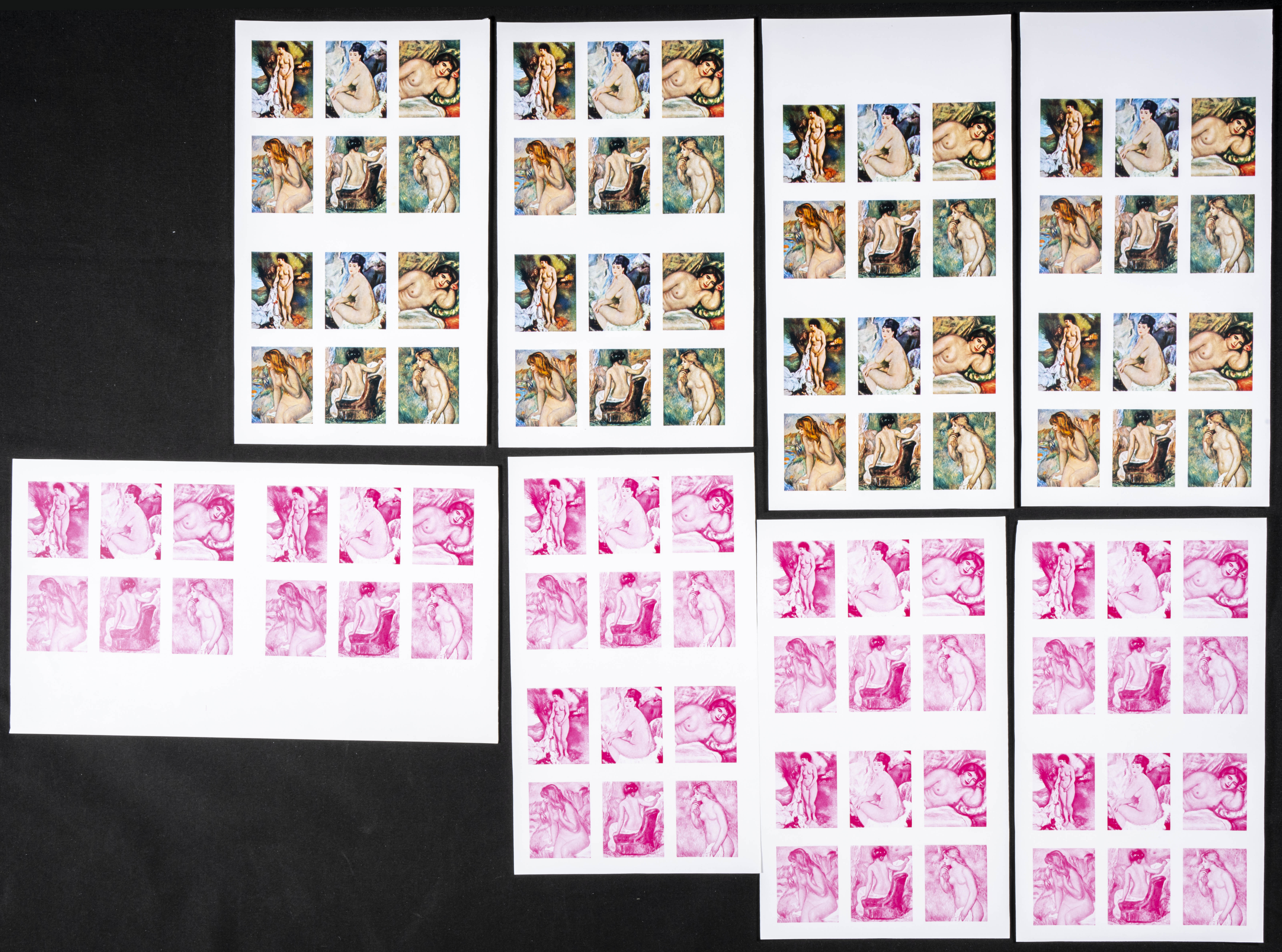 ★★ . 1971. Renoir paintings. Group of progressive plate proofs of the set. (Michel: 853/60). TO EXAM.