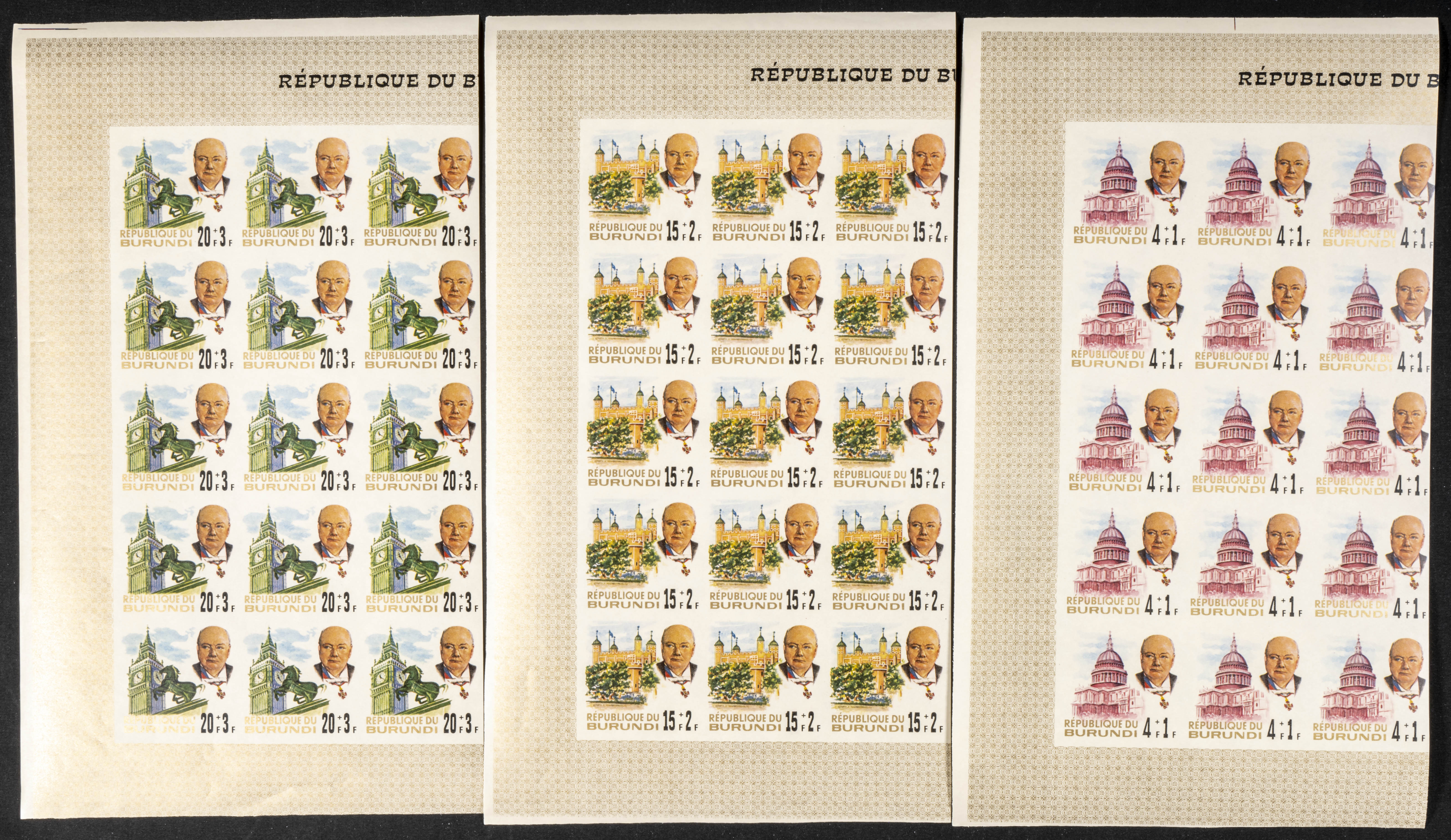★★Yvert 214/16. 1967. Churchill. Group of IMPERFORATED sets. TO EXAM.