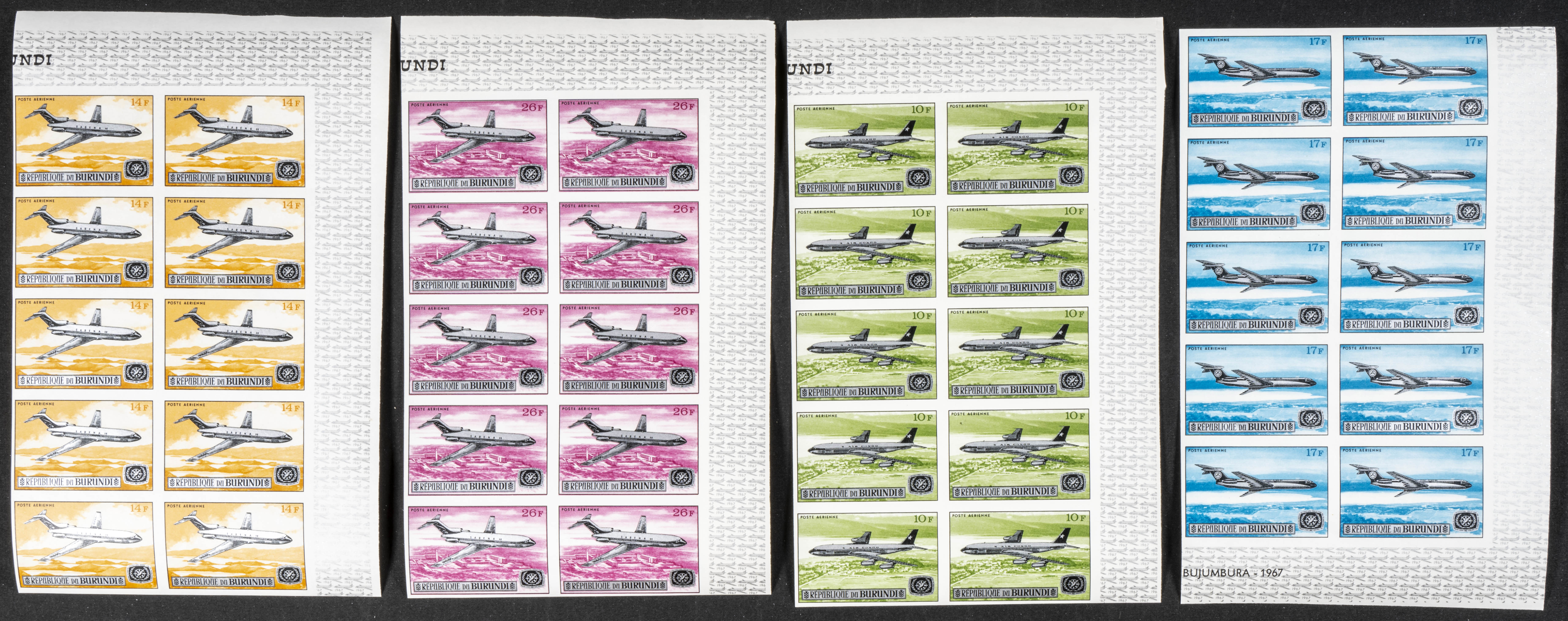 ★★Yvert A71/74. 1967. Int. year of tourism, planes. Group of IMPERFORATED sets. TO EXAM.