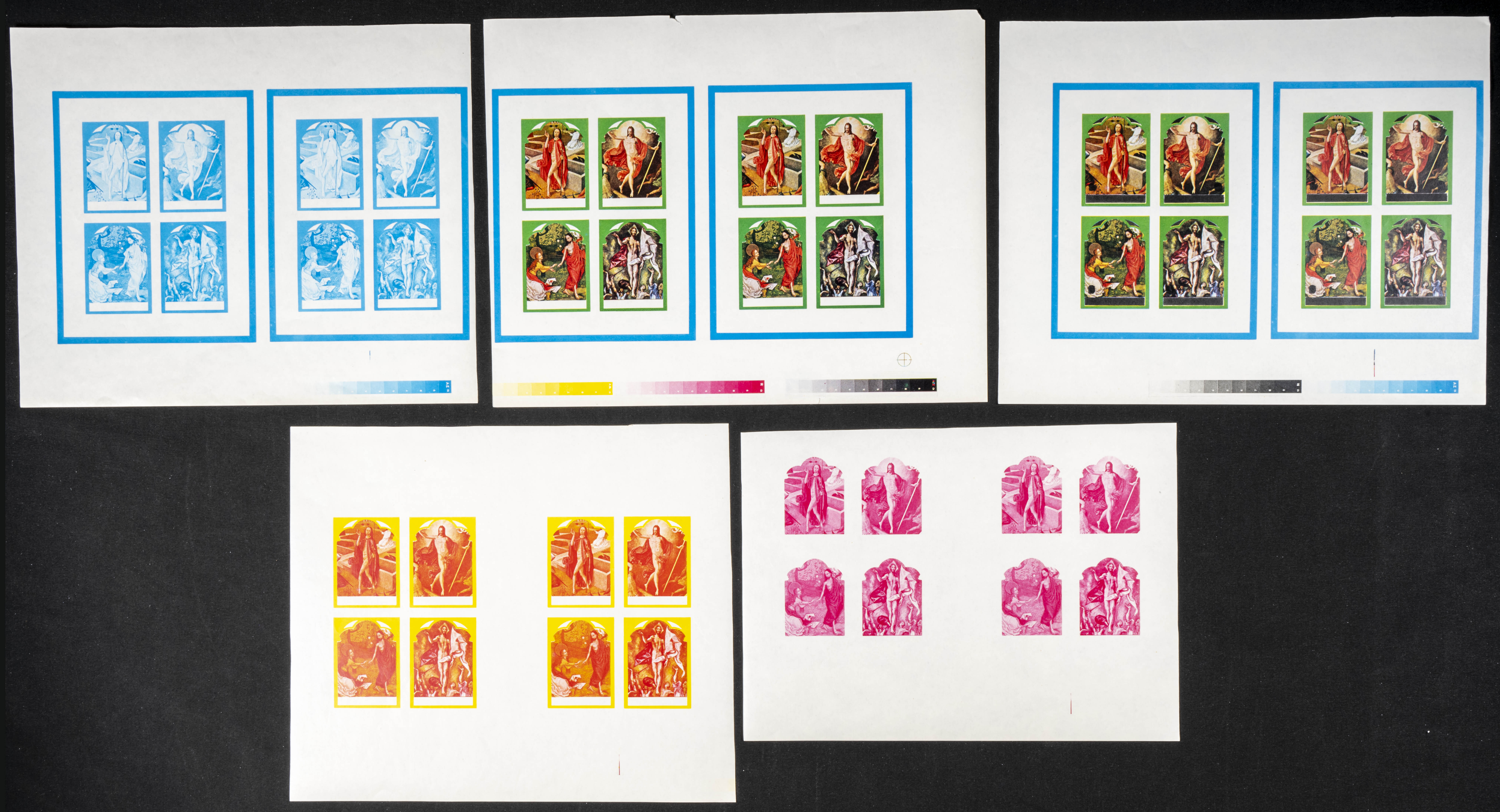 ★★Yvert B29. 1969. Easter. Group of progressive plate proofs of the set. TO EXAM.