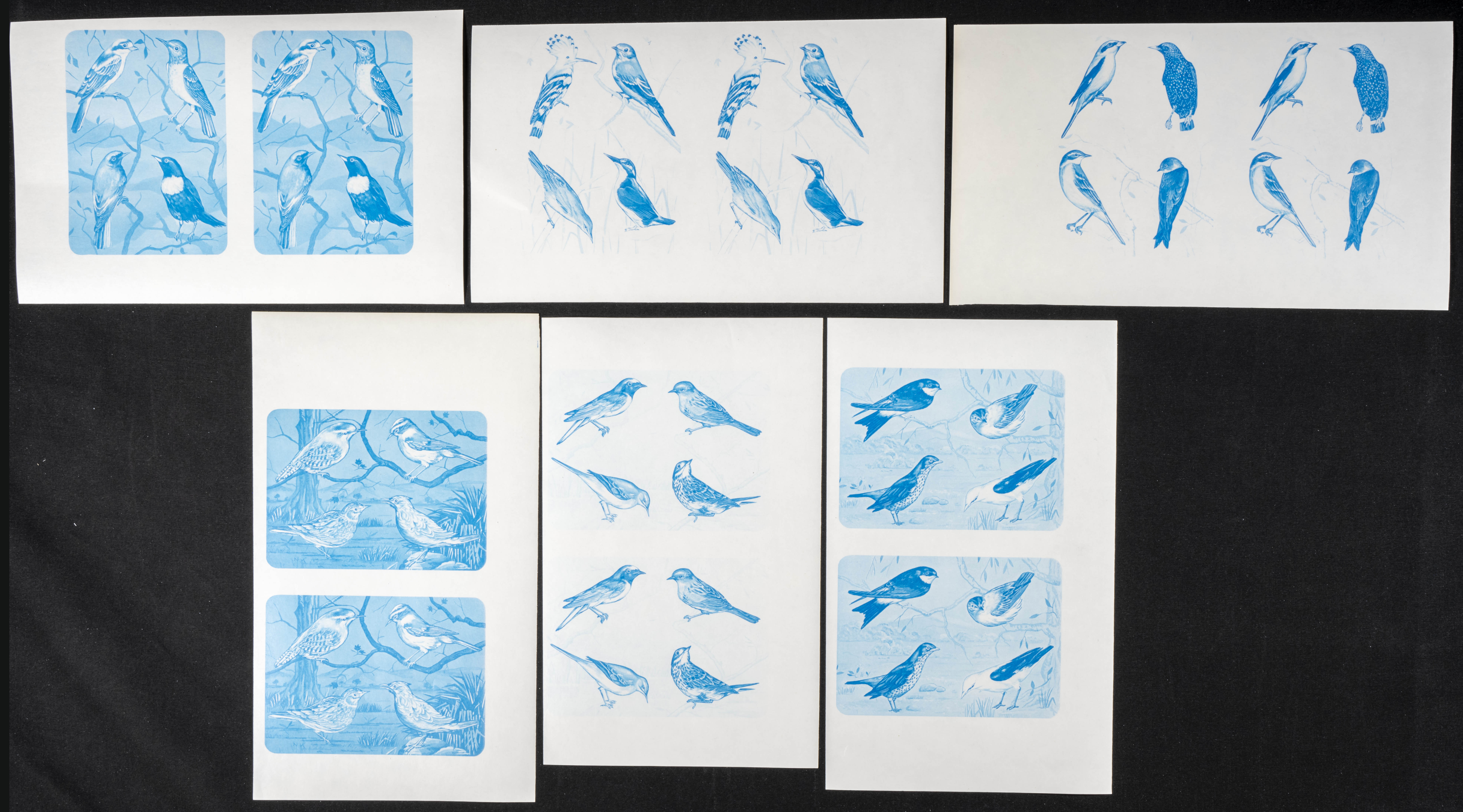 ★★Yvert . 1970. Birds. Group of progressive plate proofs of the set. (Michel: 621/56). TO EXAM.