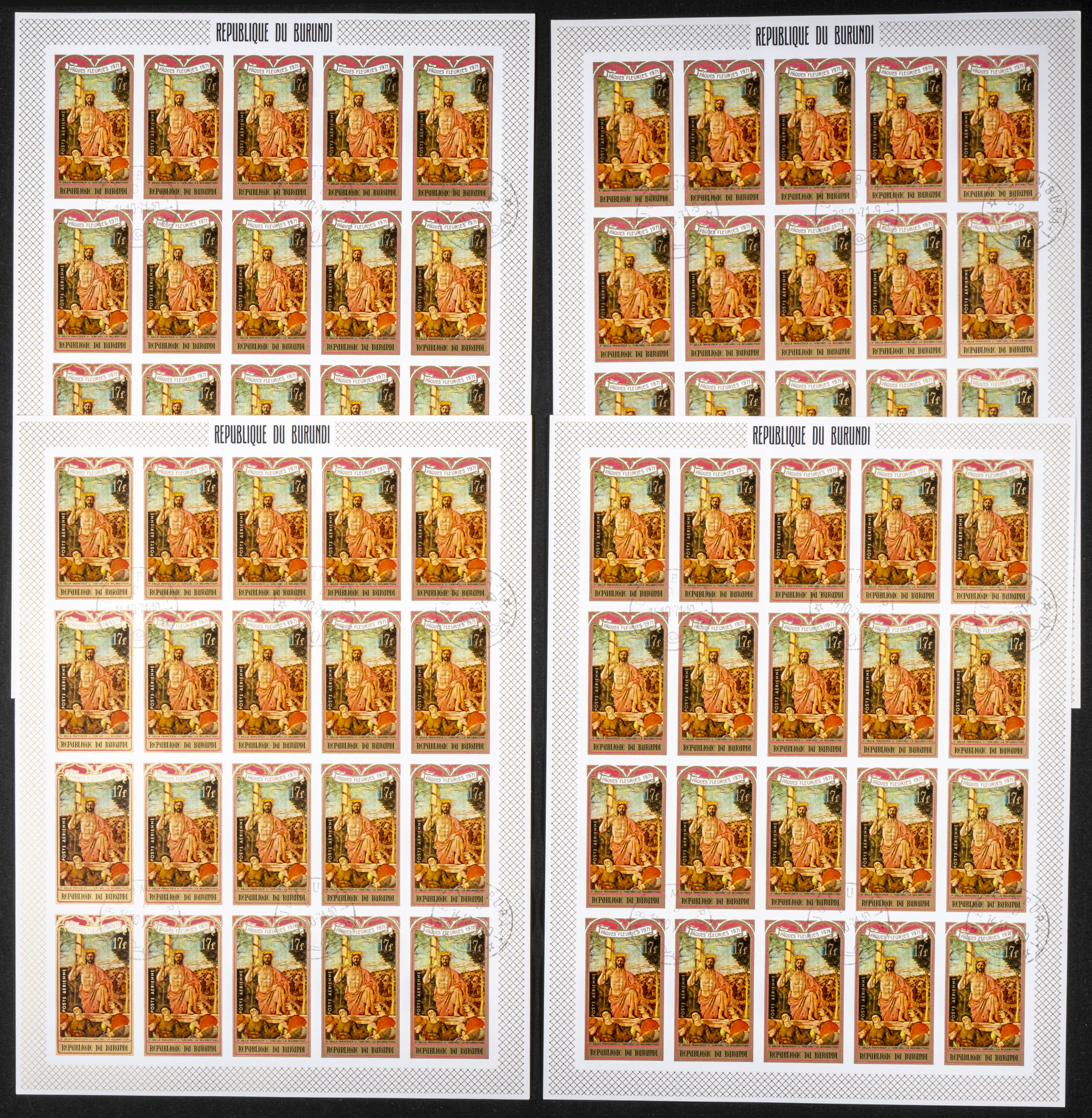 Yvert 458/60+A. 1971. Easter. Group of IMPERFORATED sets. TO EXAM.