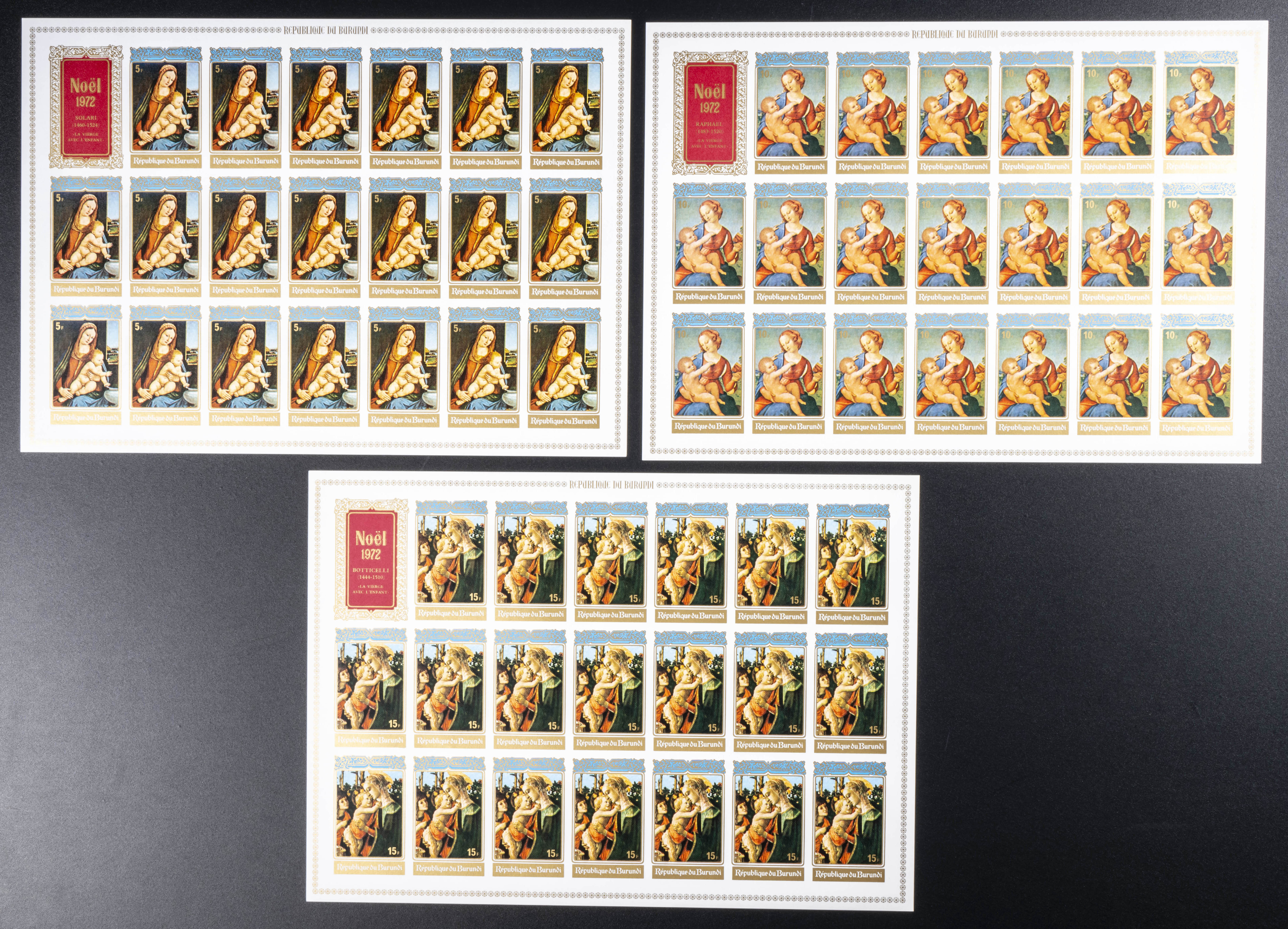 ★★Yvert 511/13. 1972. Christmas. Group of IMPERFORATED sets. TO EXAM.