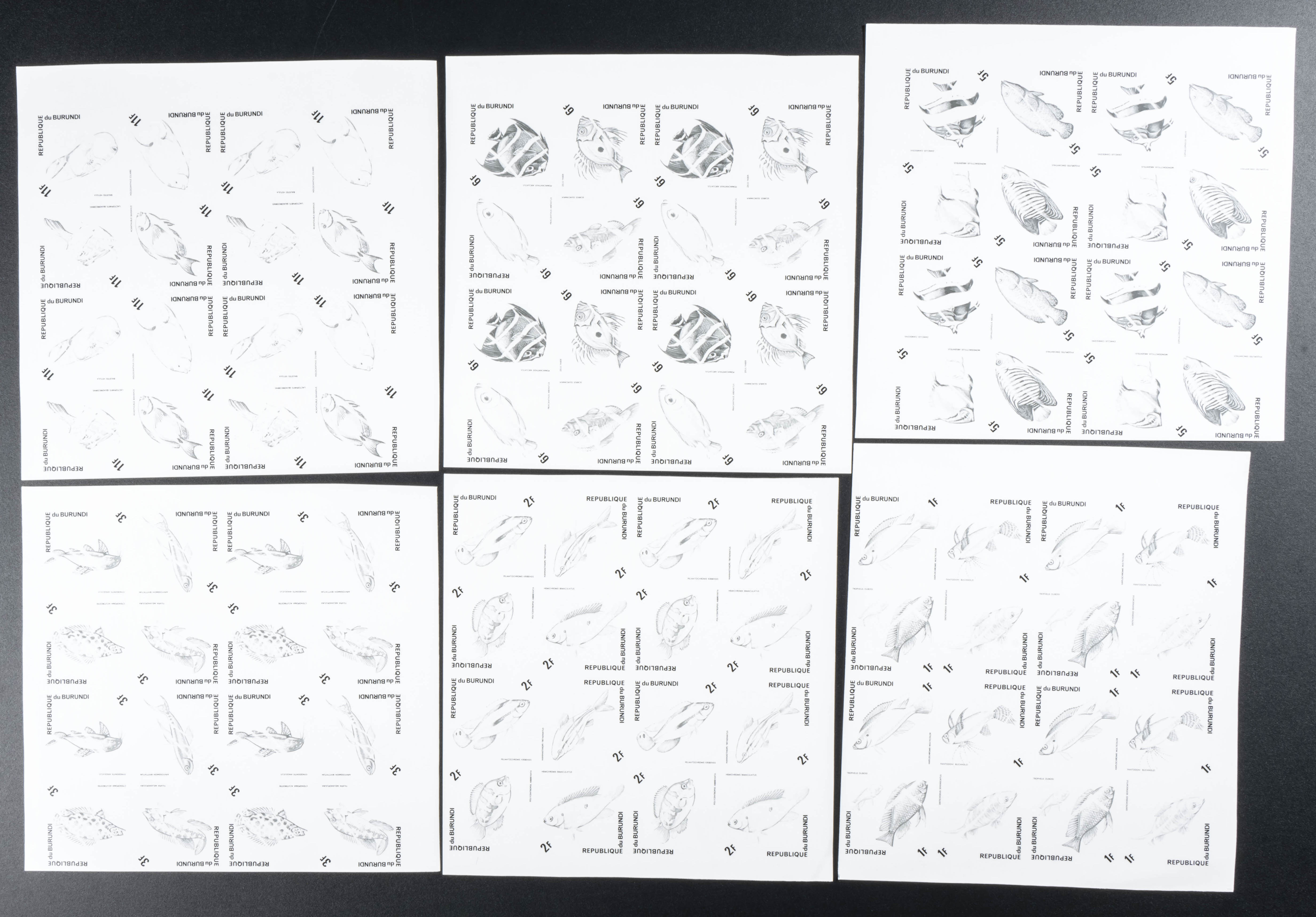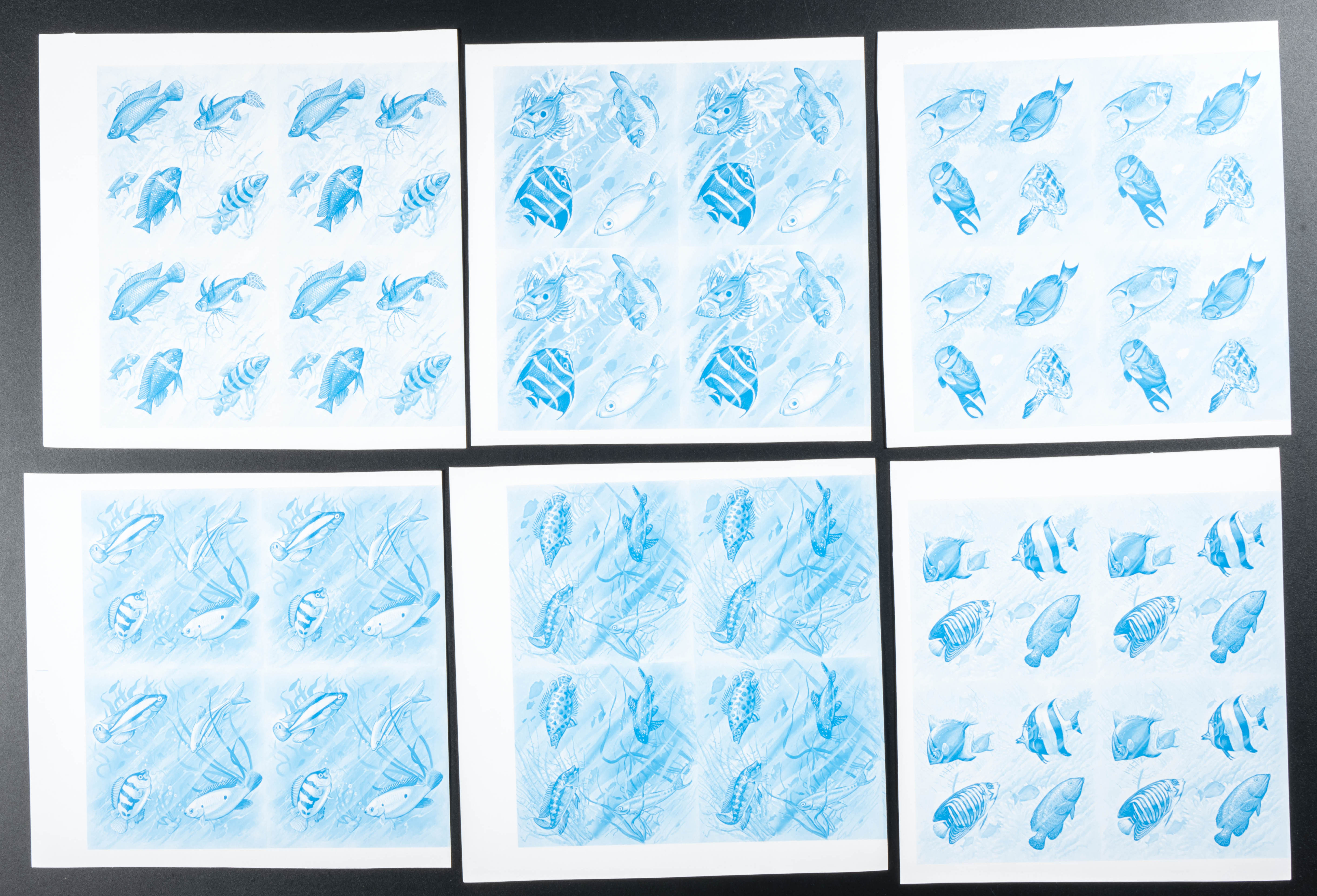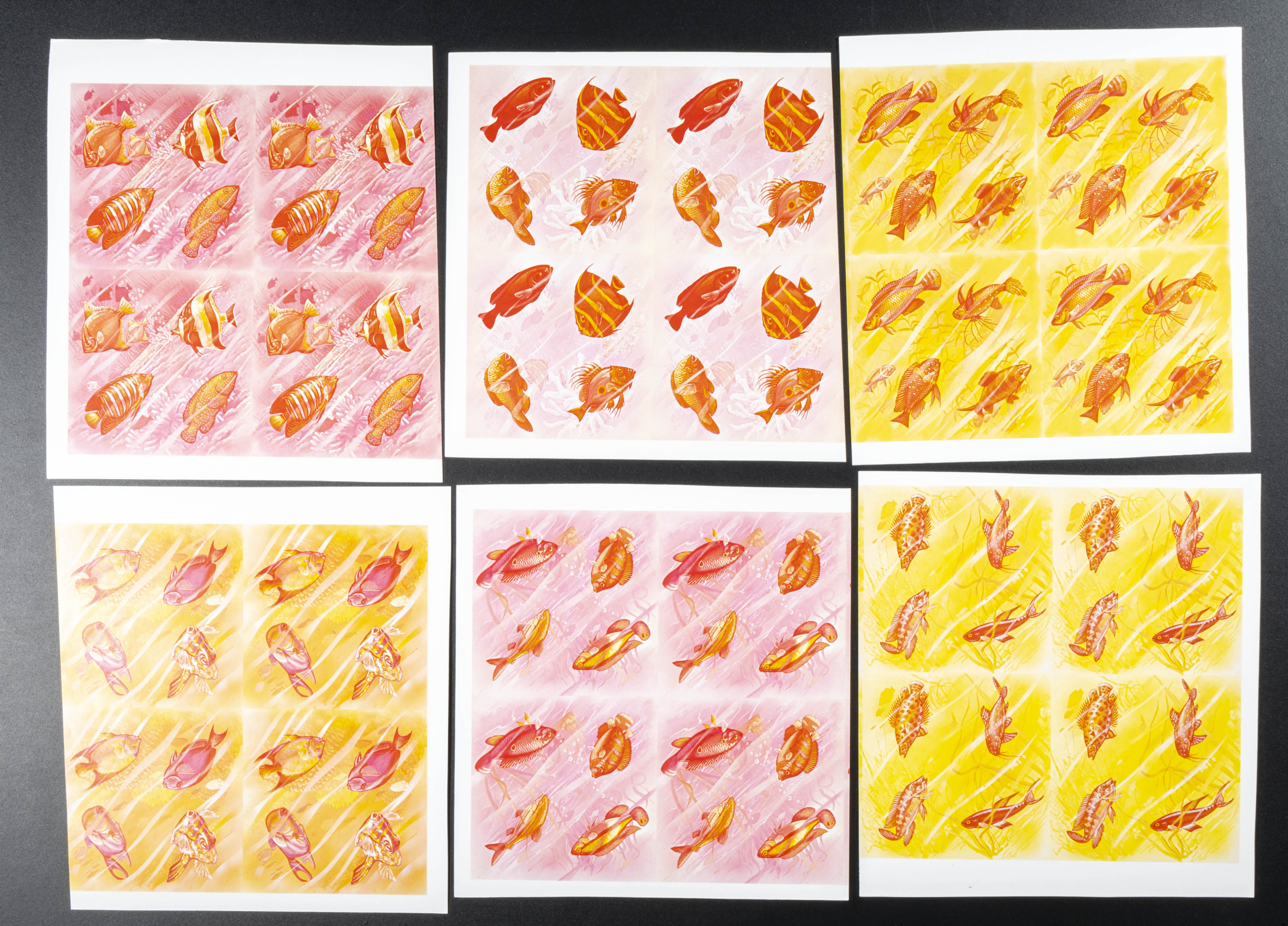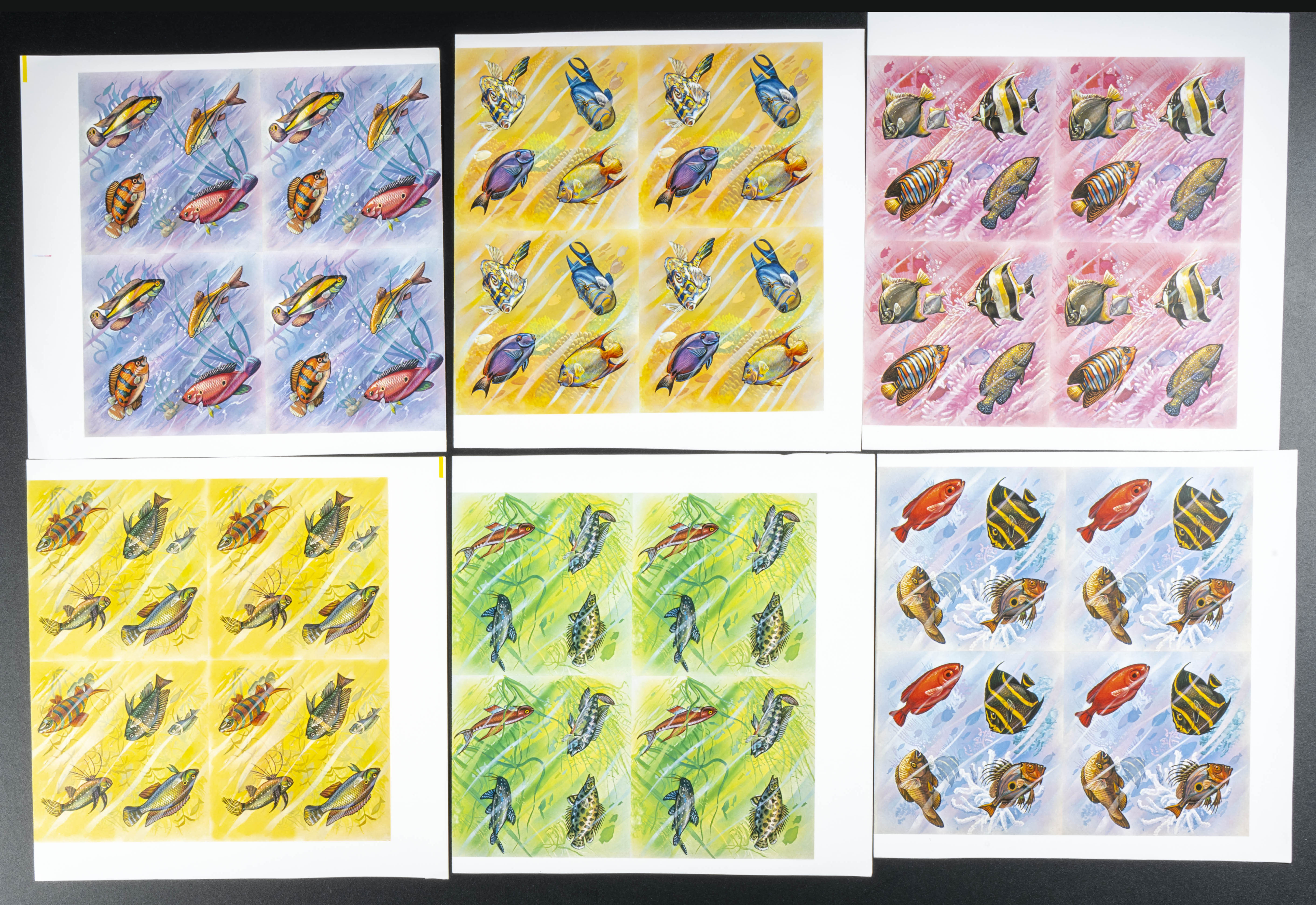 ★★Yvert . 1974. Fish. Group of progressive plate proofs of the set. (Michel: 1034/57). TO EXAM.