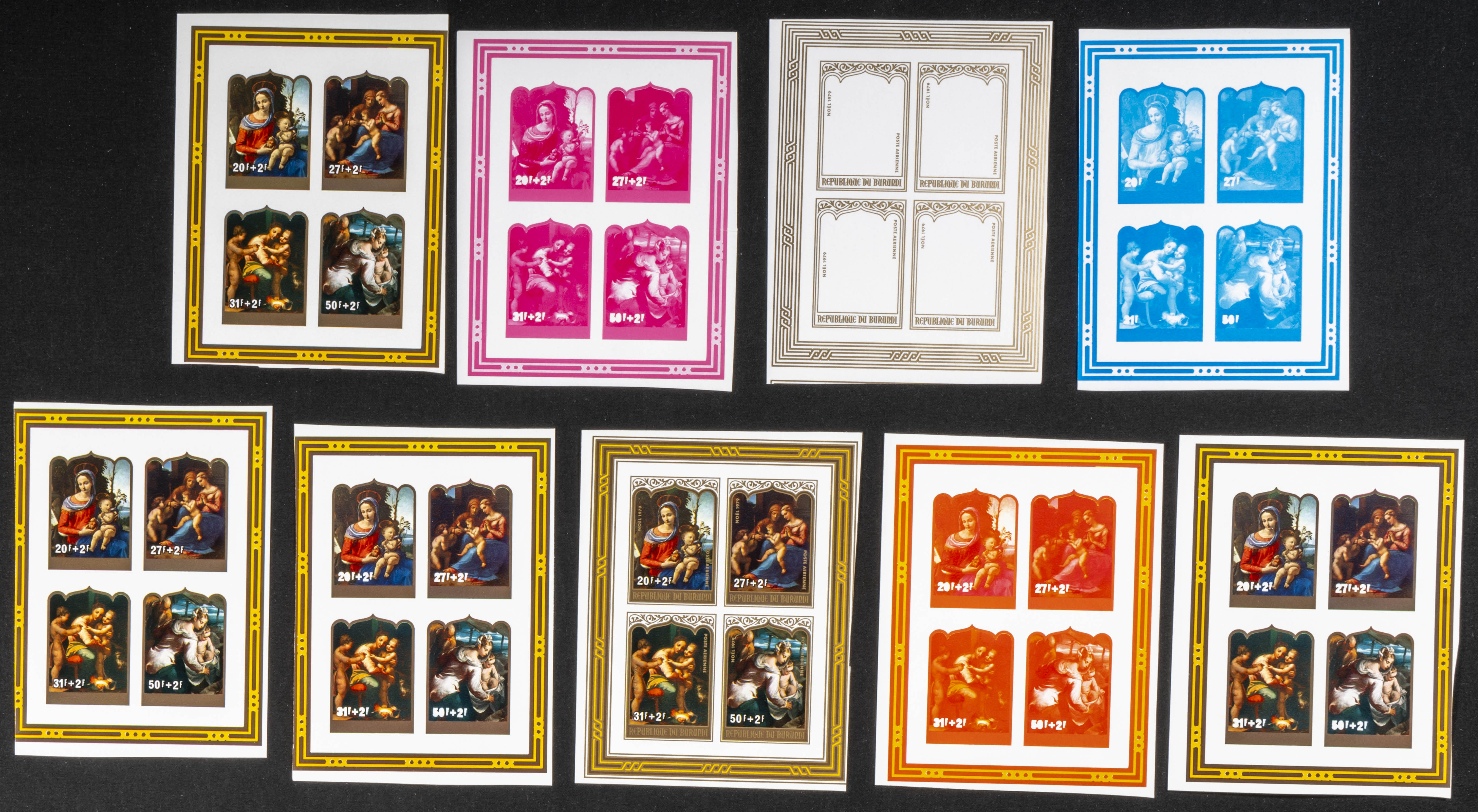 ★★Yvert B109/10. 1979. Christmas. Group of progressive plate proofs of the set. TO EXAM.
