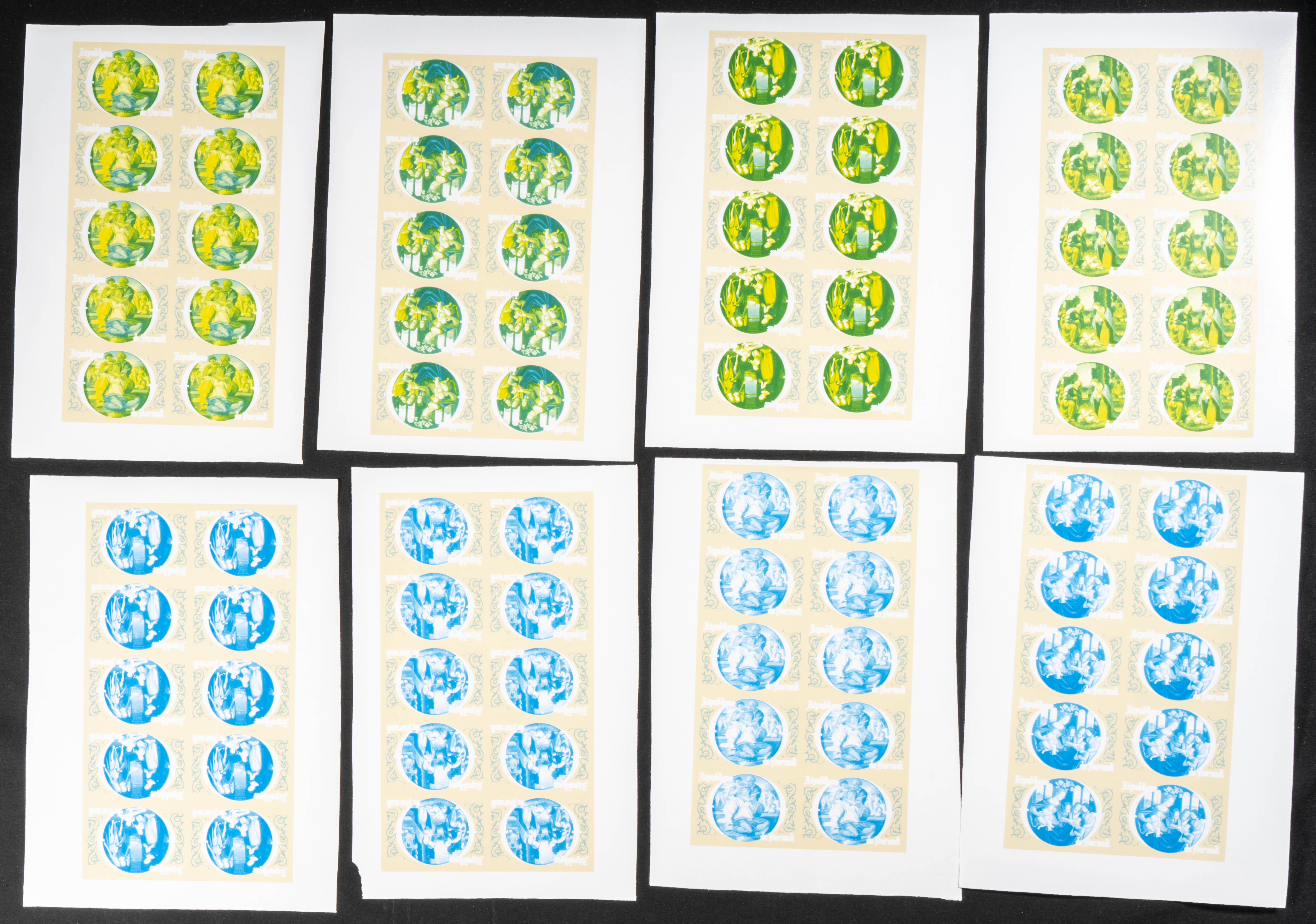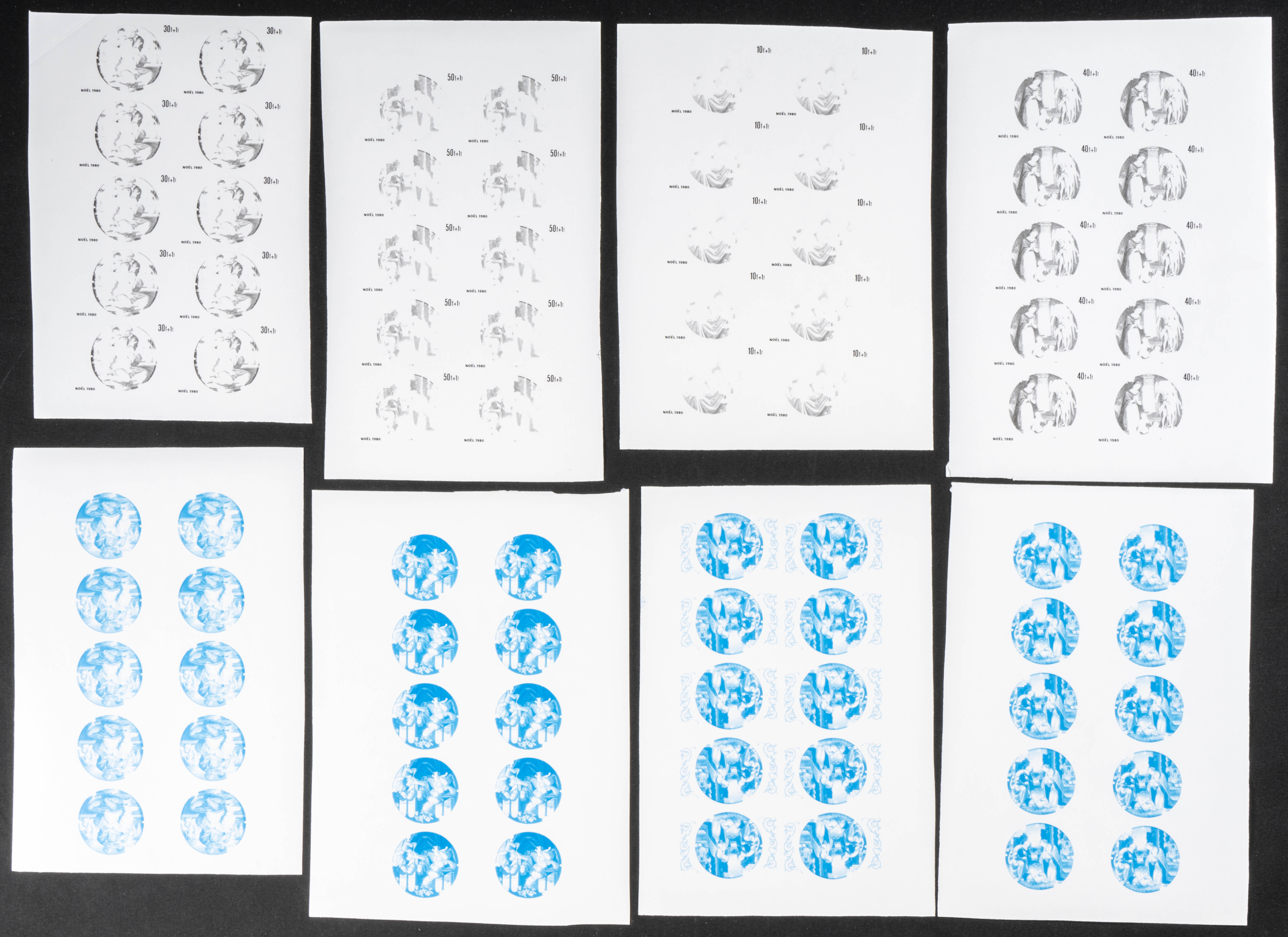 ★★Yvert 844/47. 1980. Christmas. Group of progressive plate proofs of the set. TO EXAM.