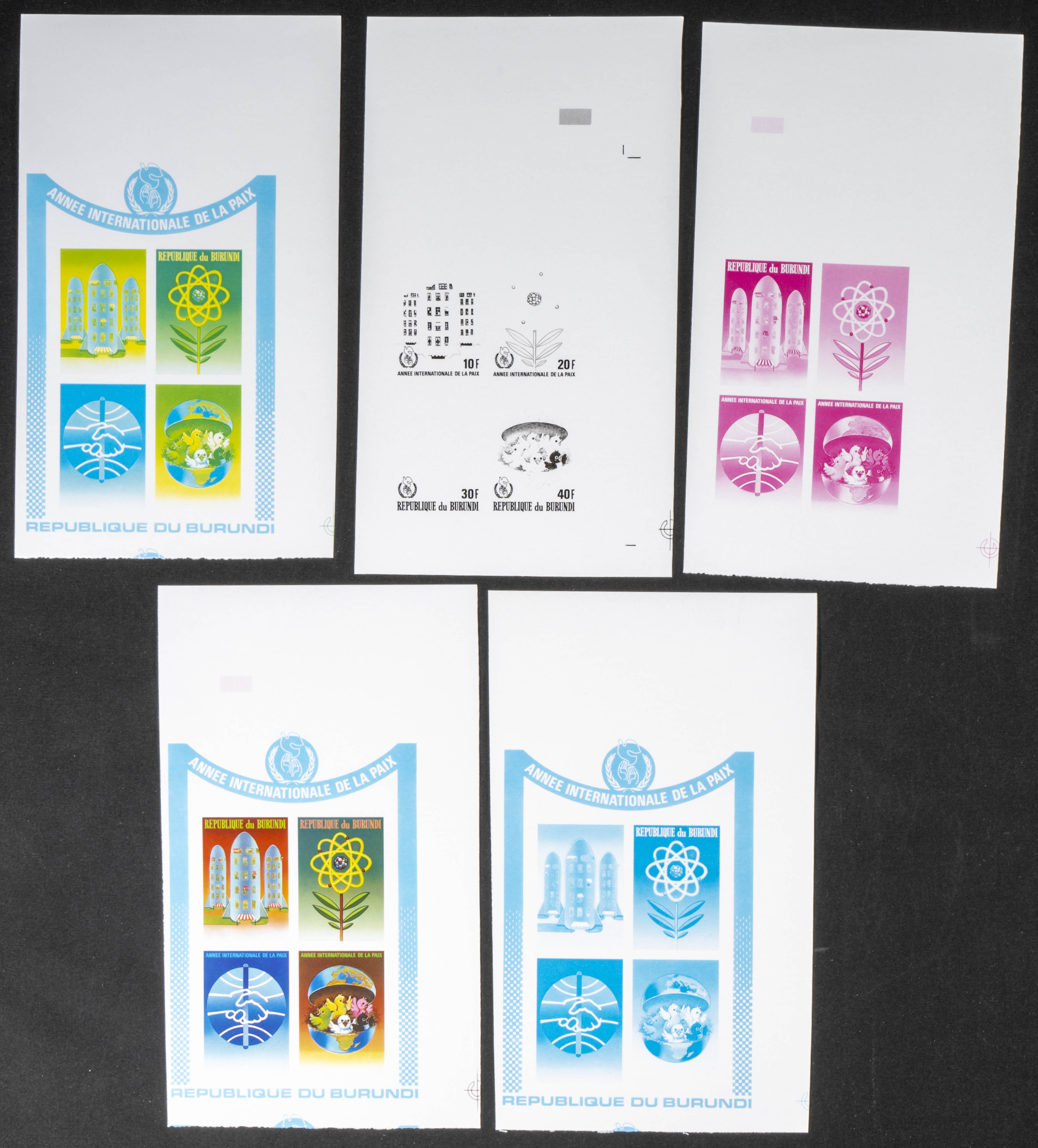 ★★Yvert . 1987. International Year of Peace. Group of progressive plate proofs of the set. (Michel: B124). TO EXAM.