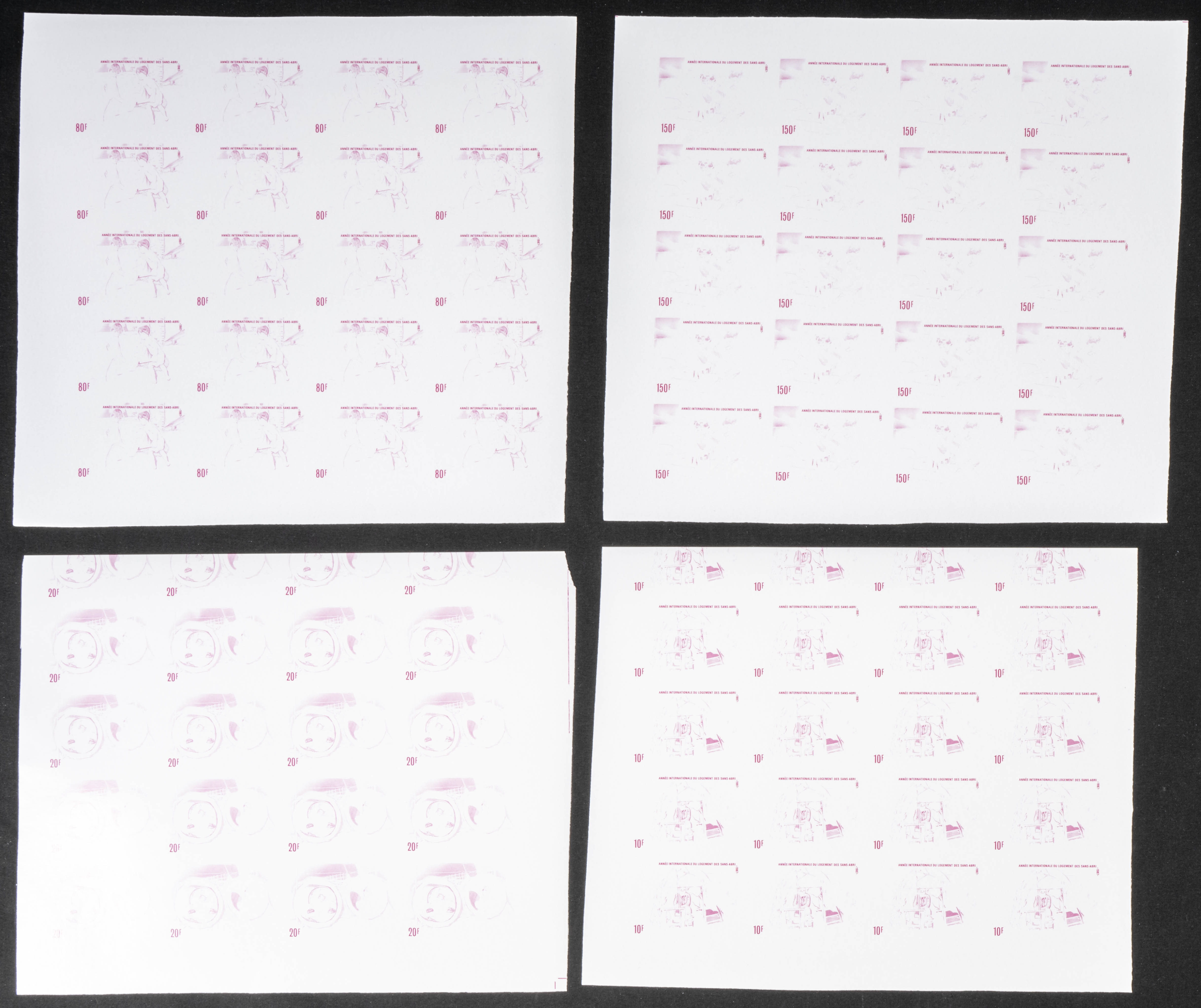 ★★Yvert 934/37. 1988. Habitation year. Group of progressive plate proofs of the set. TO EXAM.
