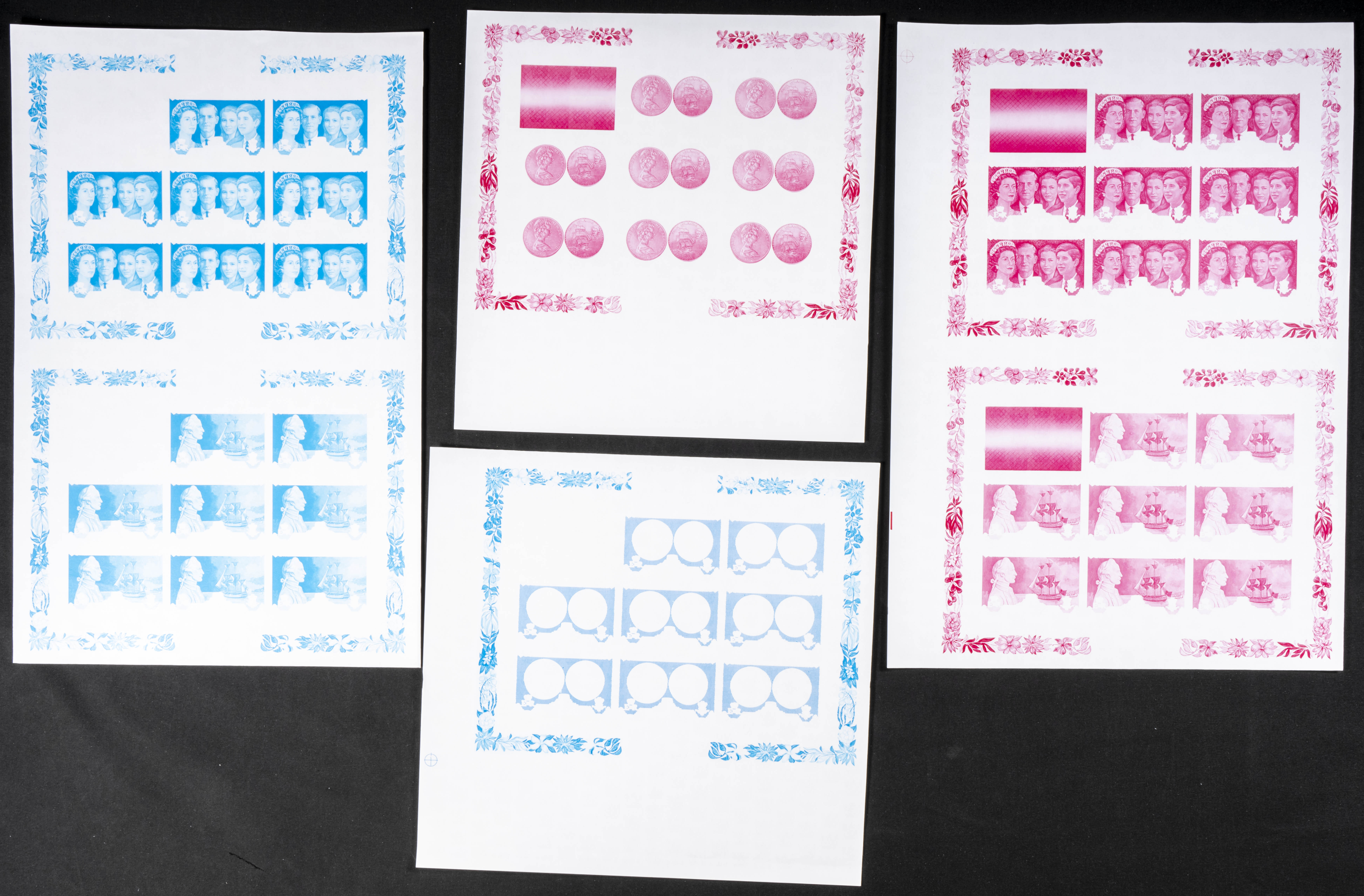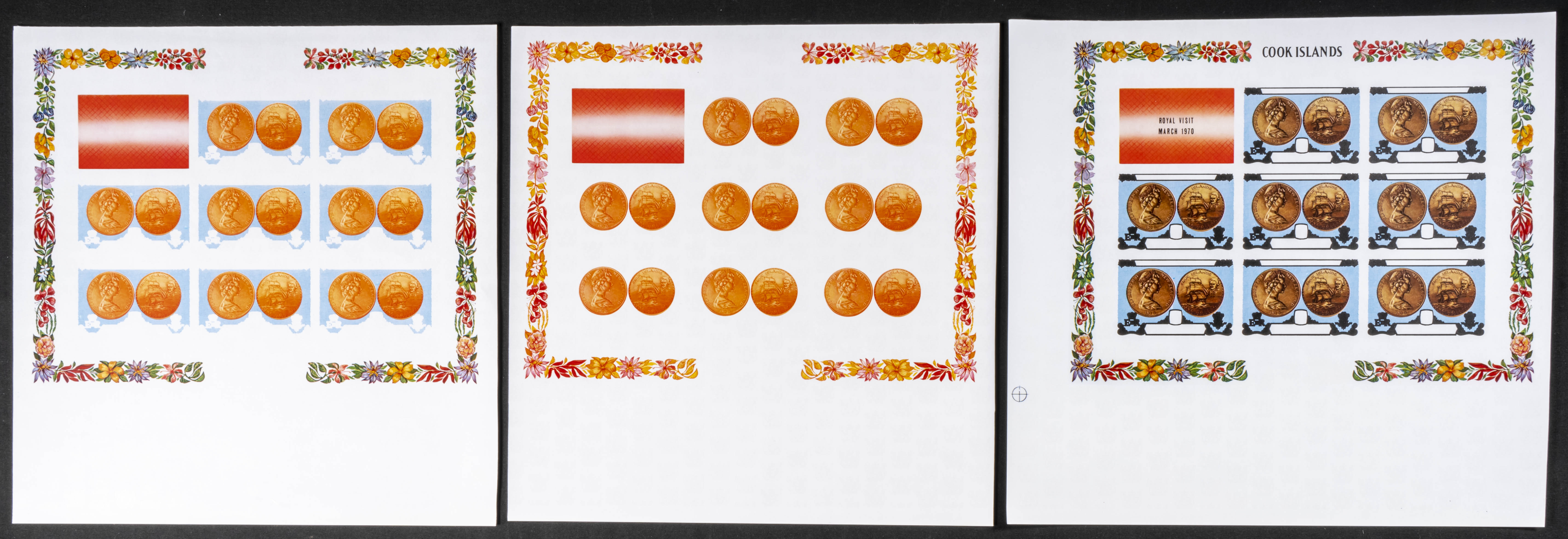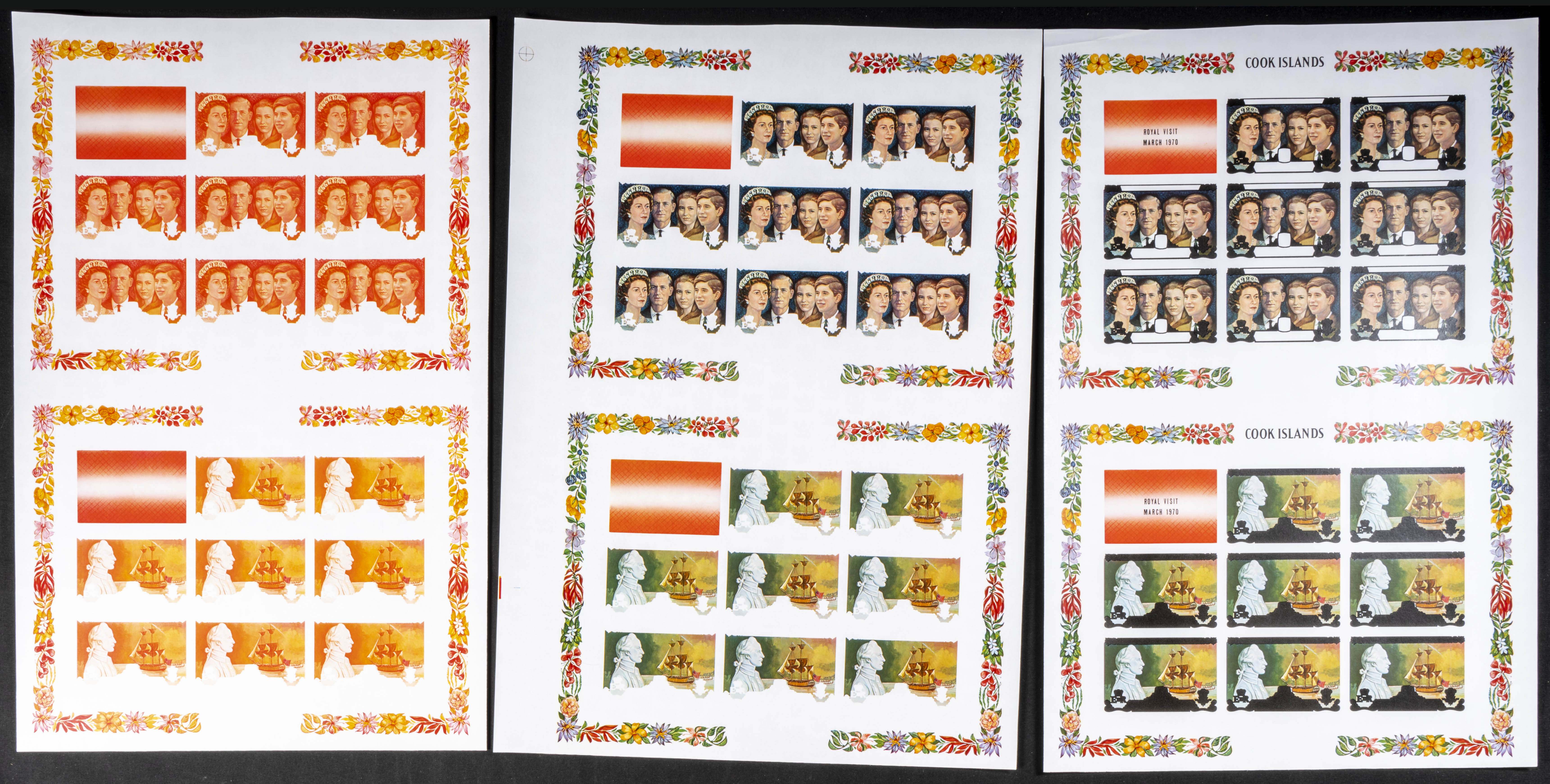 ★★Yvert 249/51. 1970. Royal visit. Group of progressive plate proofs of the set. TO EXAM.