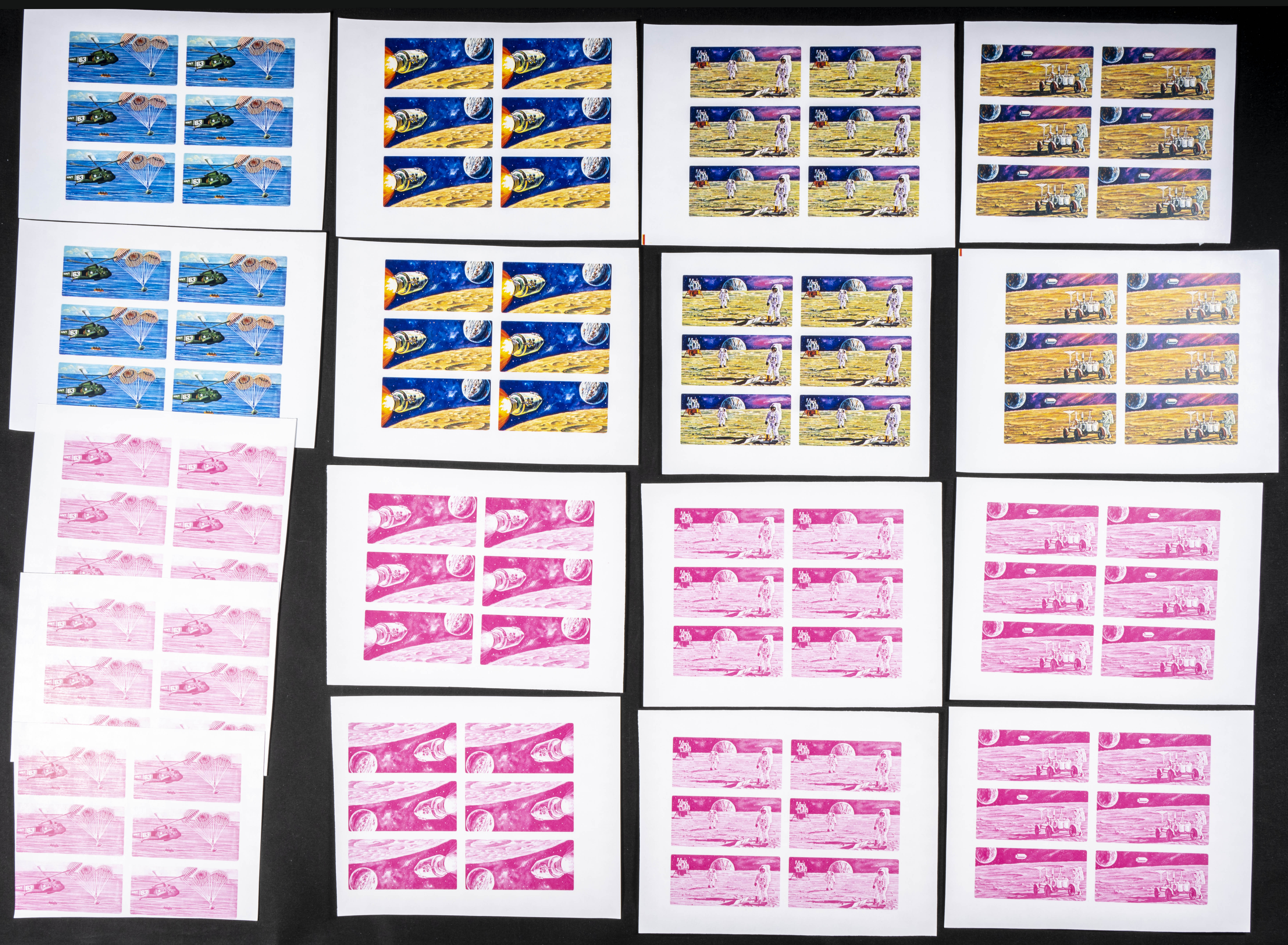 ★★Yvert 304/11. 1972. Apollo flights. Group of progressive plate proofs of the set. TO EXAM.