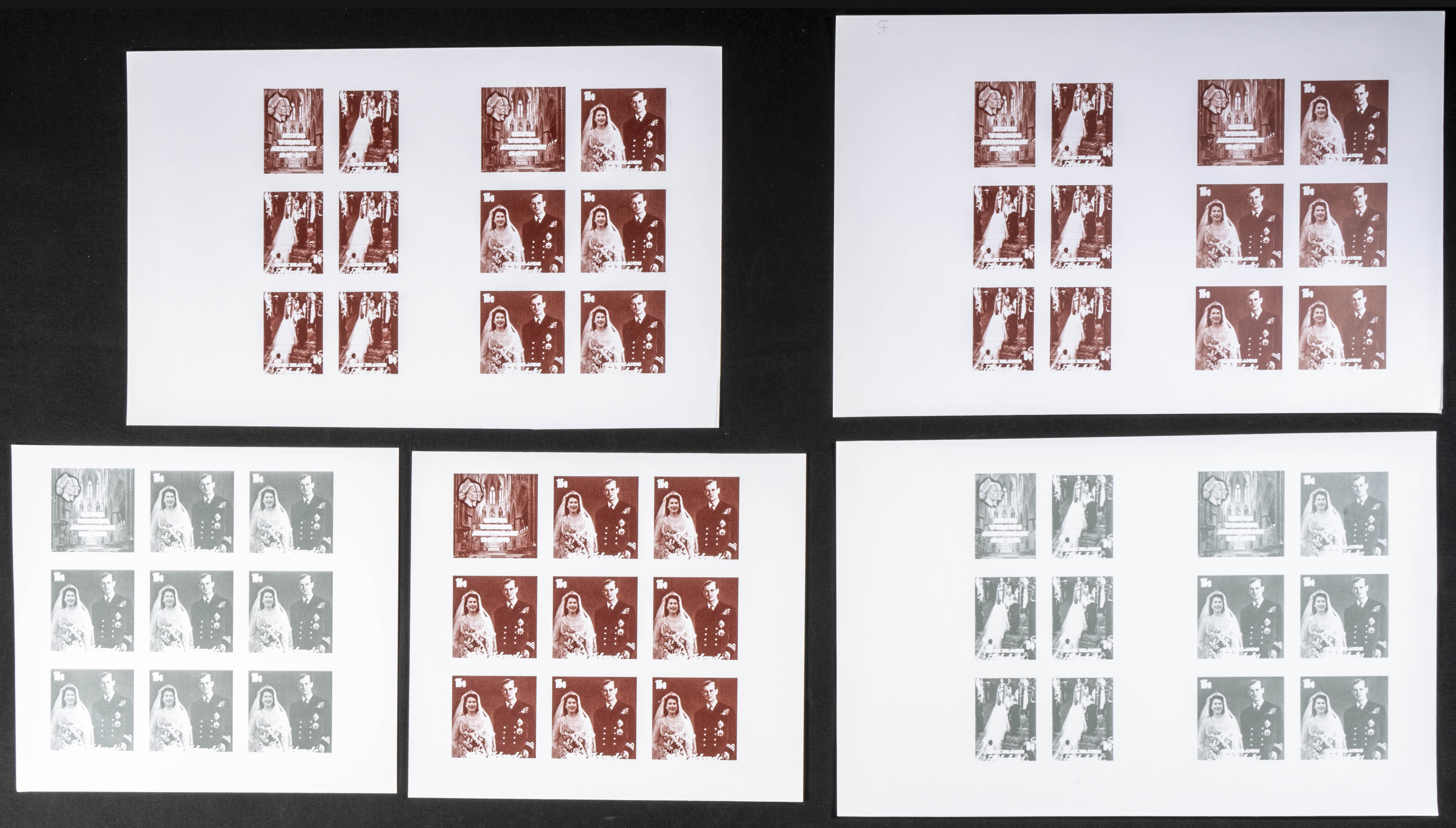 ★★Yvert 328/31. 1972. Royal silver wedding. Group of progressive plate proofs of the set. TO EXAM.