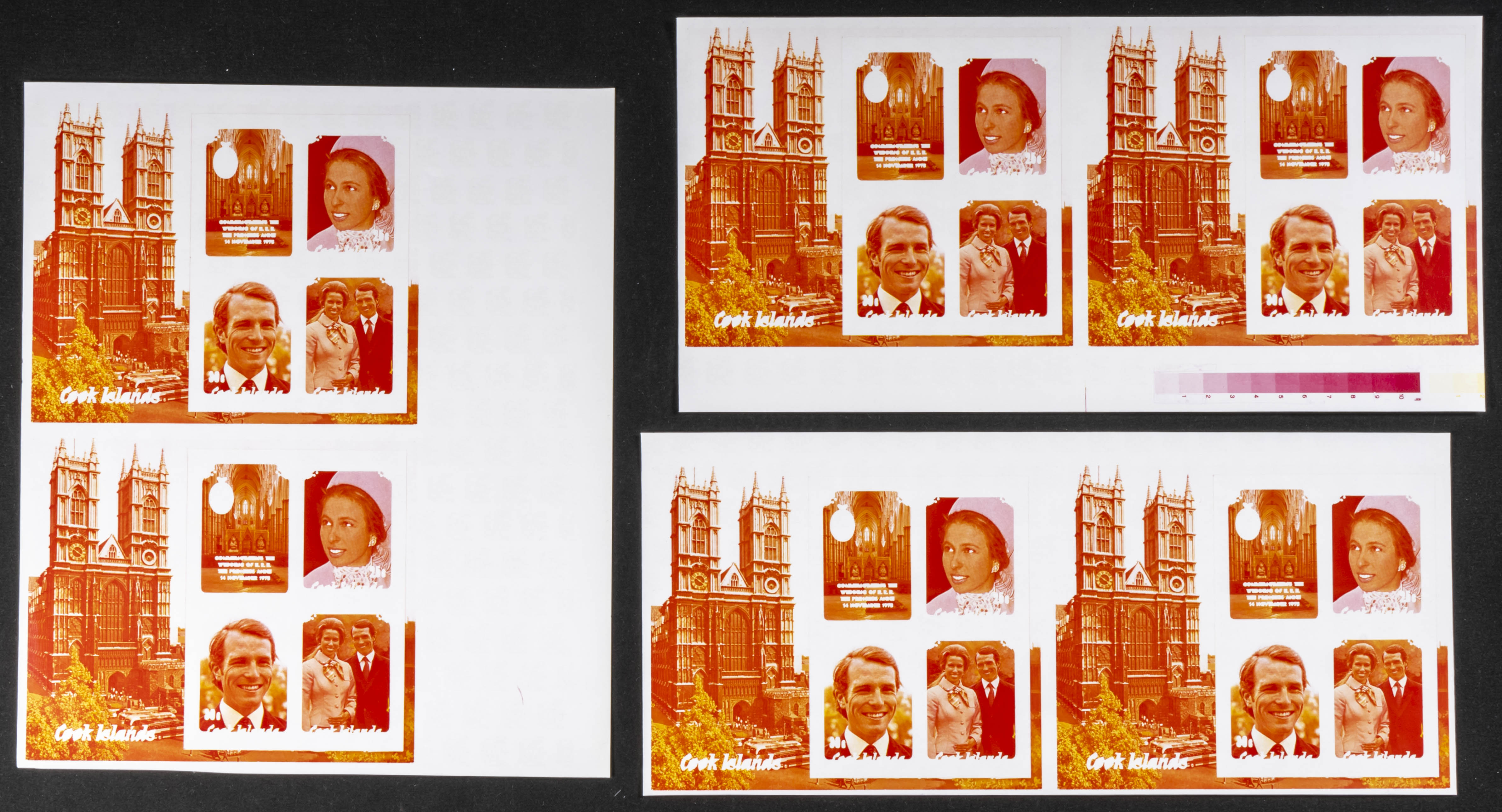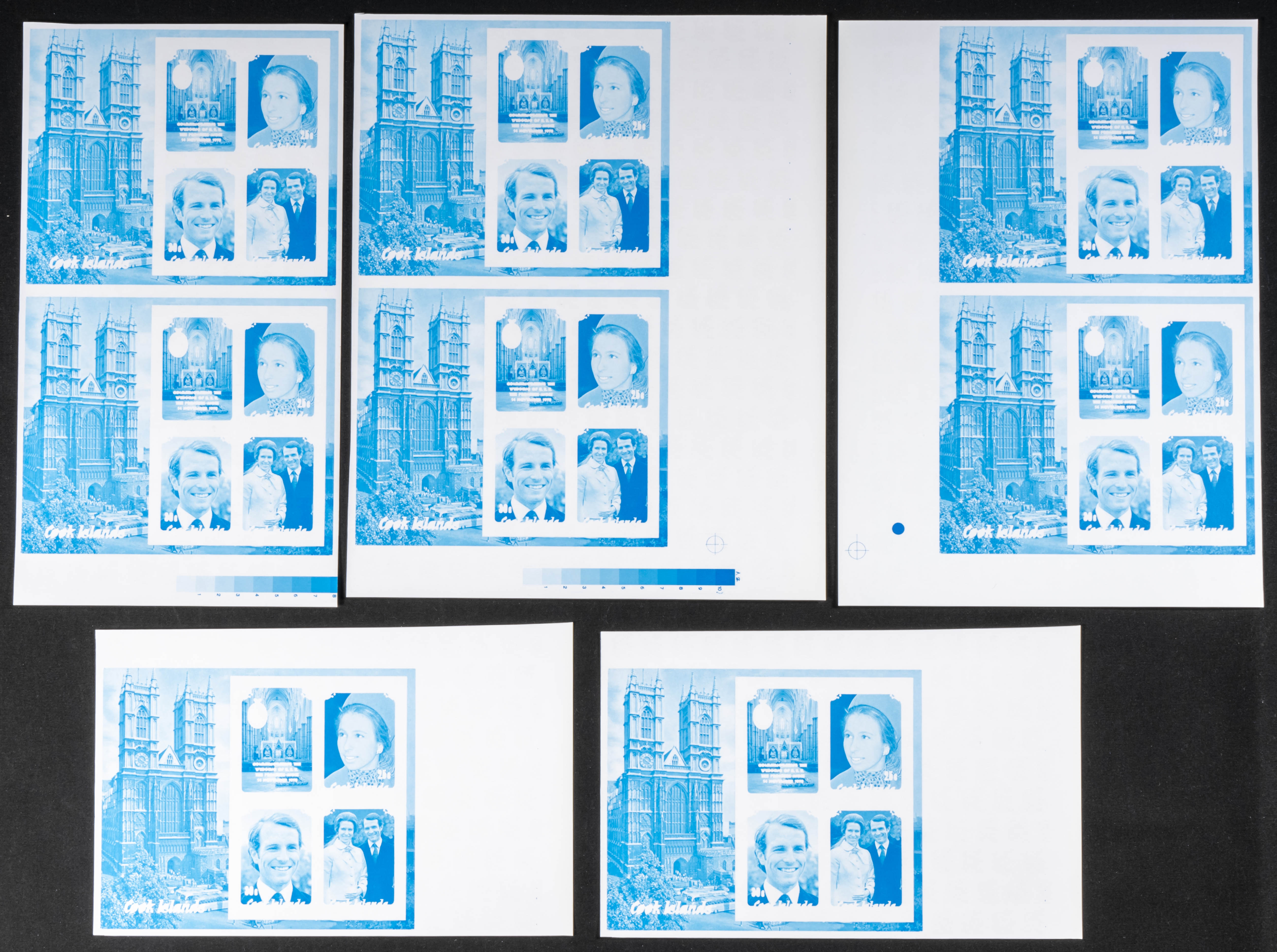 ★★Yvert B25. 1973. Anne/Mark wedding. Group of progressive plate proofs of the set. TO EXAM.