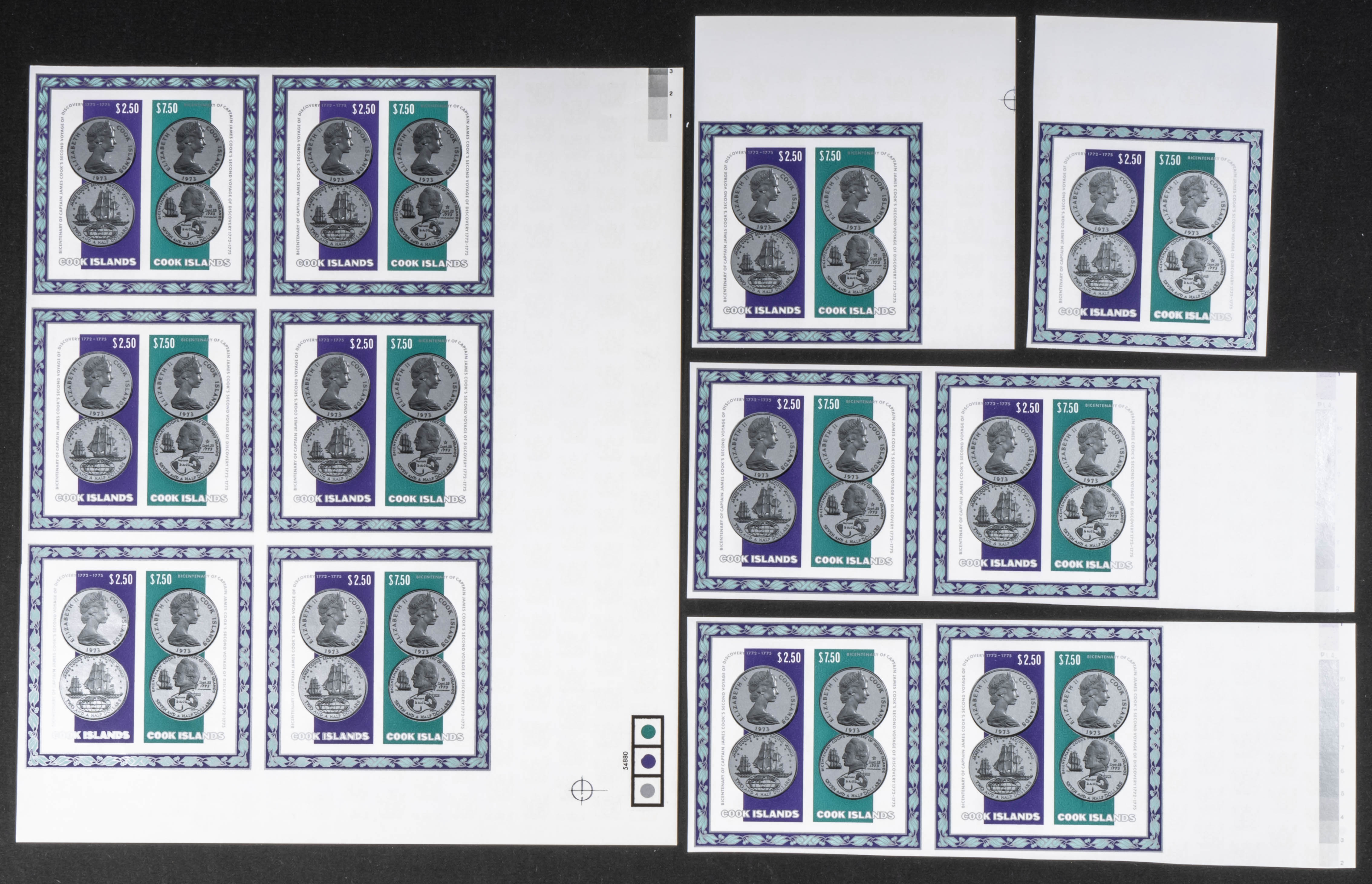 ★★Yvert B37. 1974. James Cook, coins. Group of IMPERFORATED sets. TO EXAM.