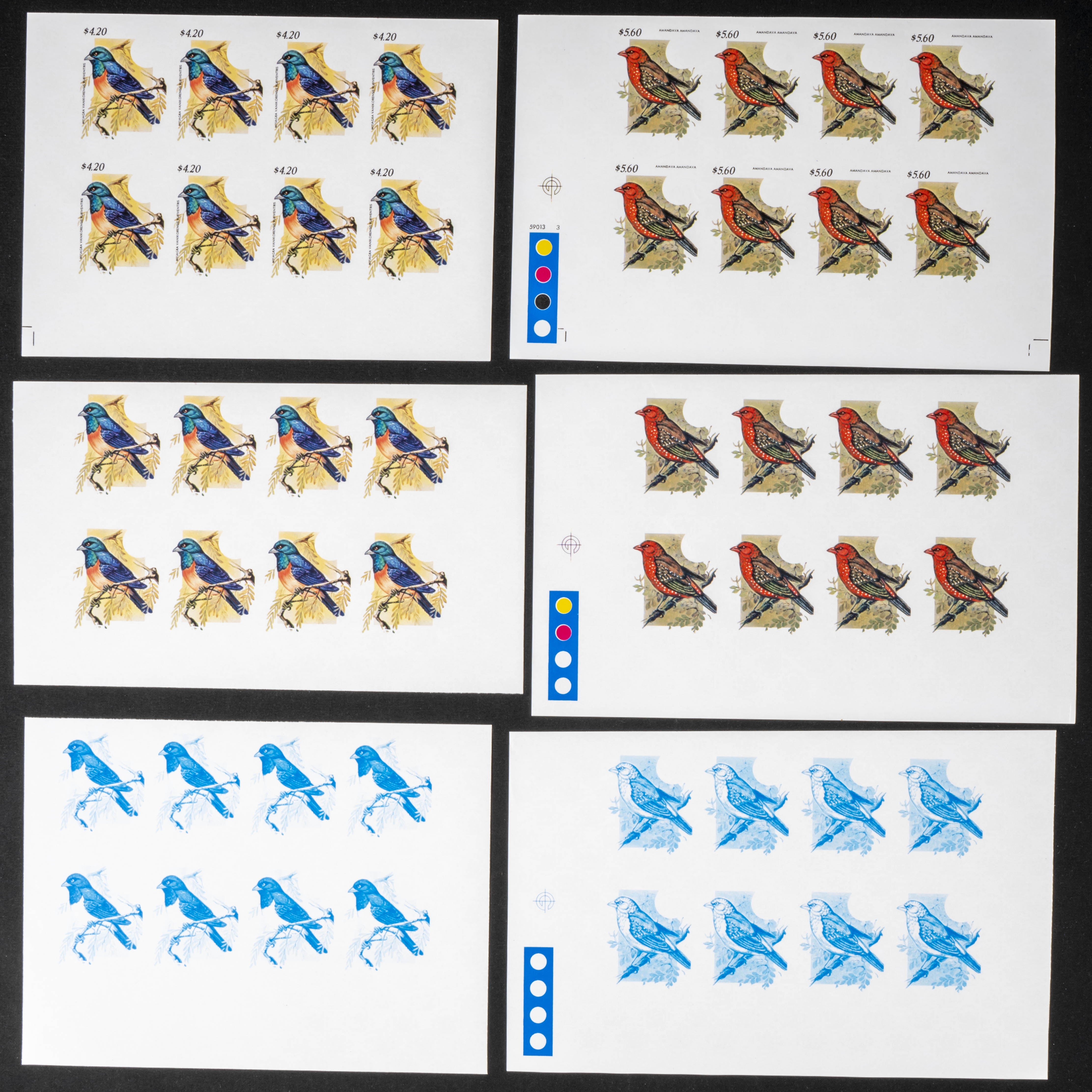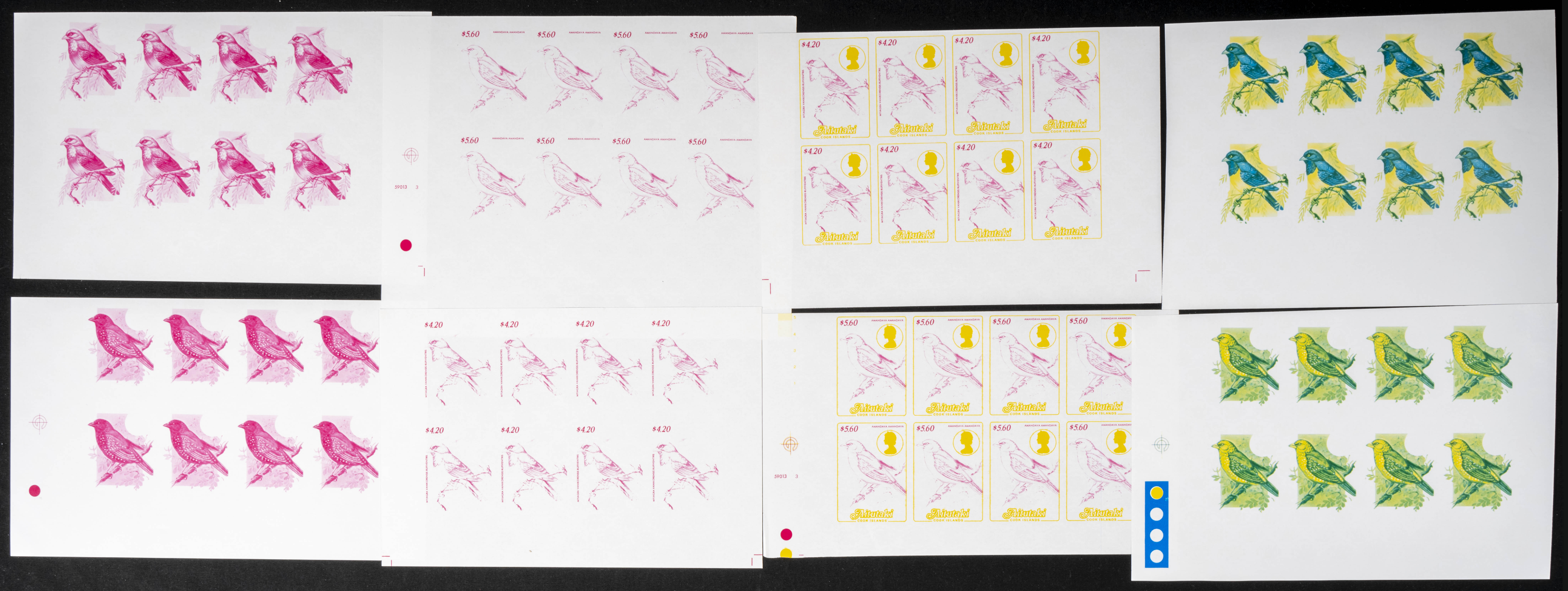 ★★Yvert 380/89. 1984. Birds. Group of progressive plate proofs of the set. TO EXAM.