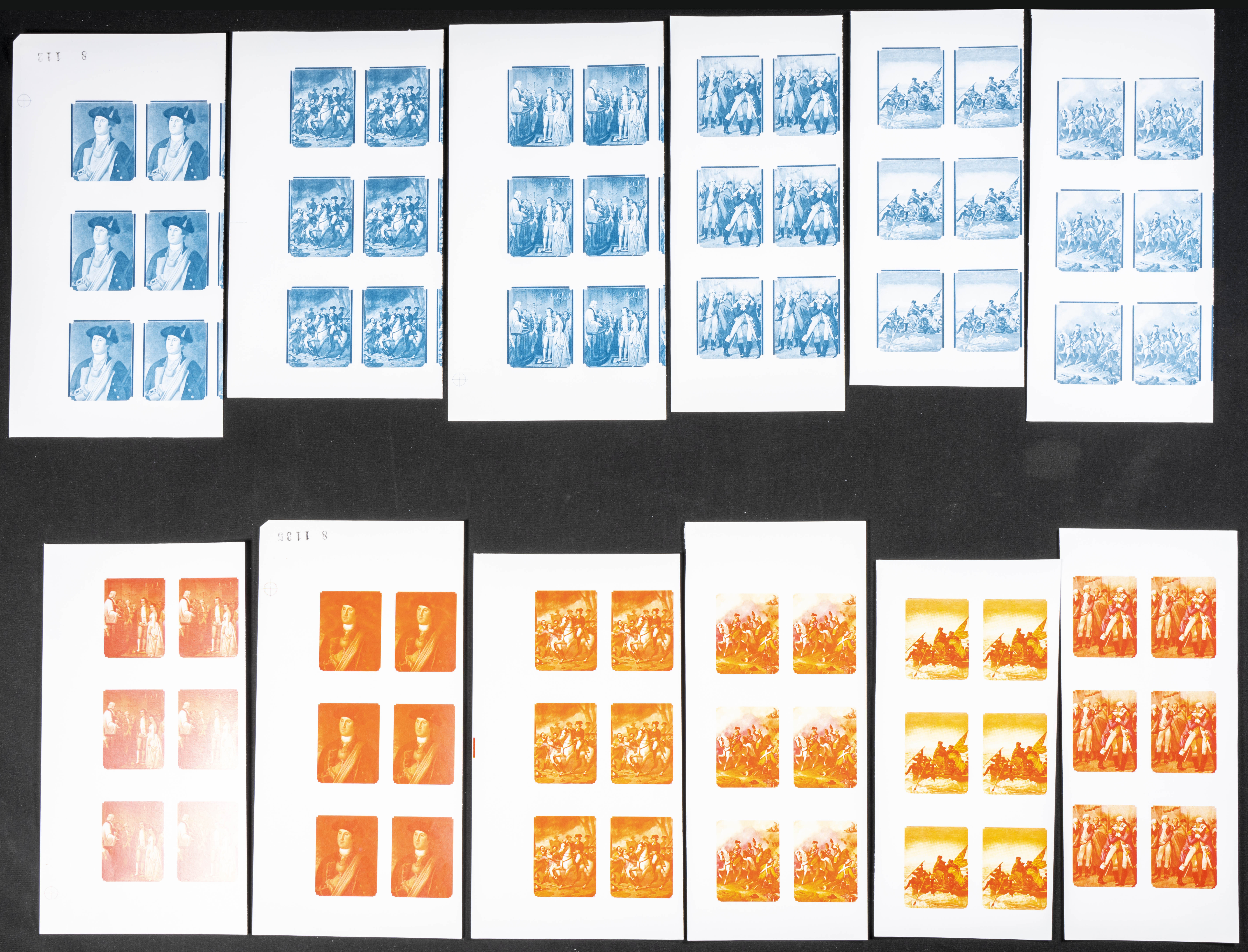 ★★1972. Philadelphia 1976. Group of progressive plate proofs of the set. (Michel: 793/98). TO EXAM.