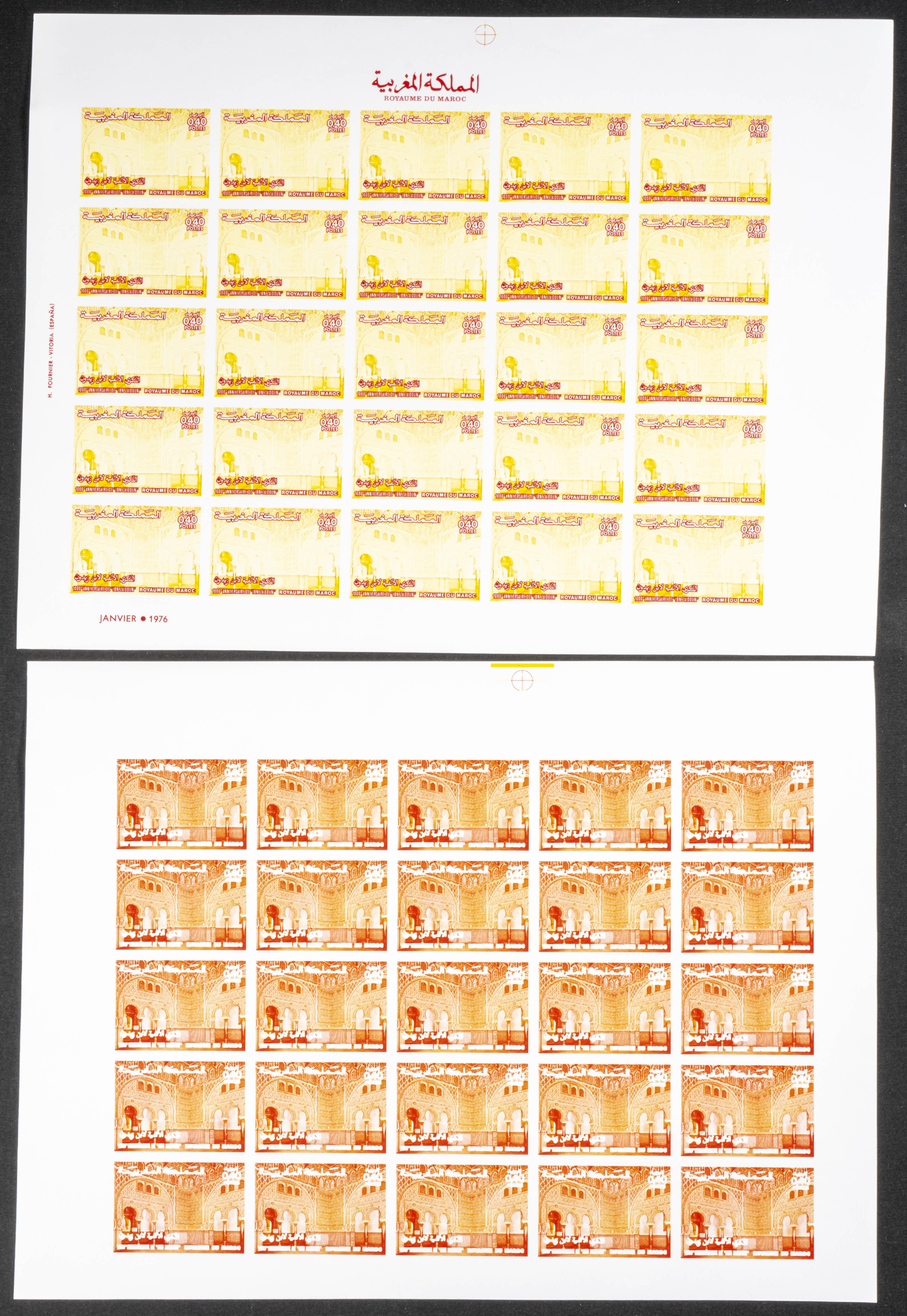★★Yvert 750/51. 1976. Ibn Zaidoun Mosque. Group of progressive plate proofs of the set. TO EXAM.