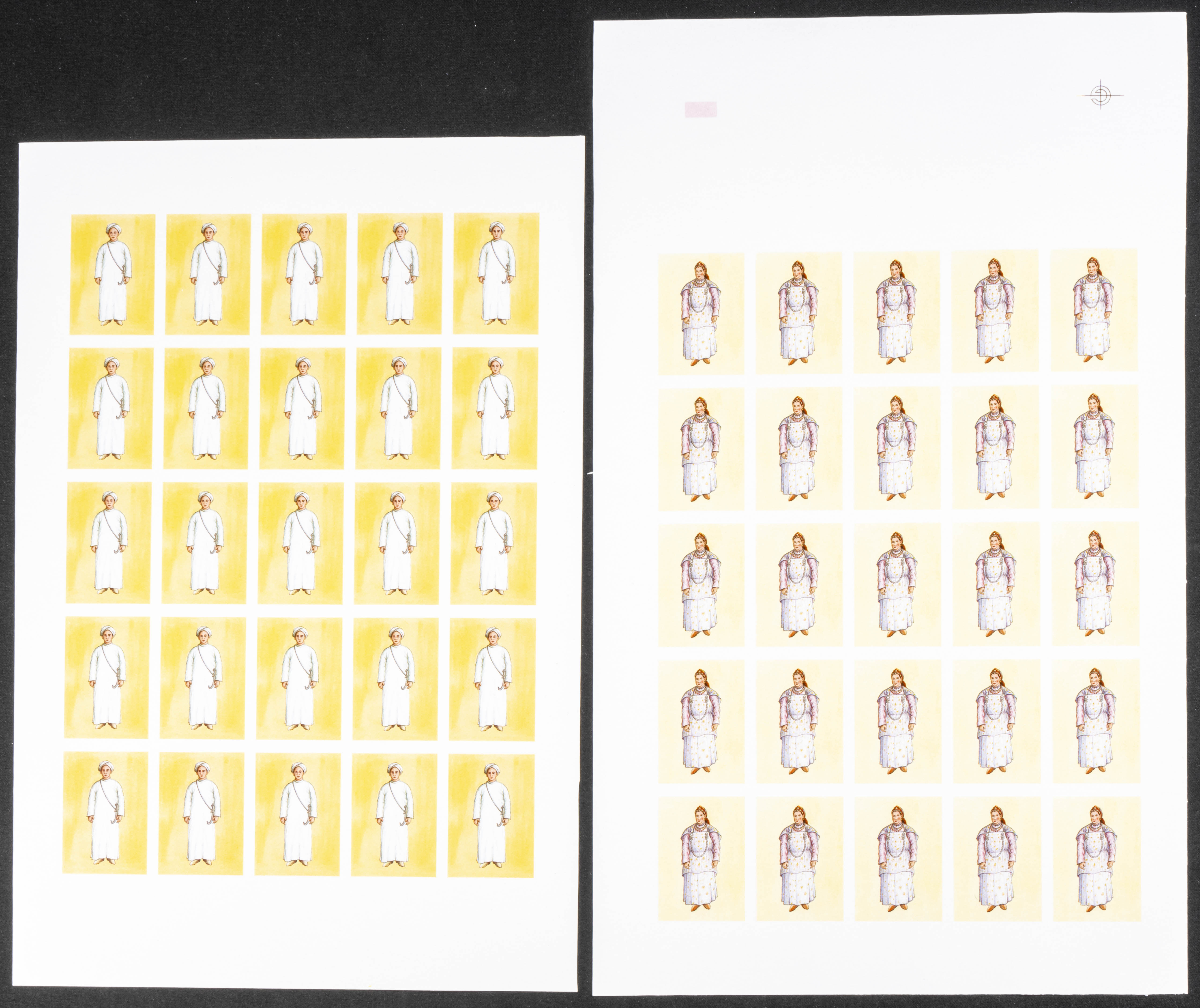 ★★Yvert 1104/05. 1991. Costumes. Group of progressive plate proofs of the set. TO EXAM.