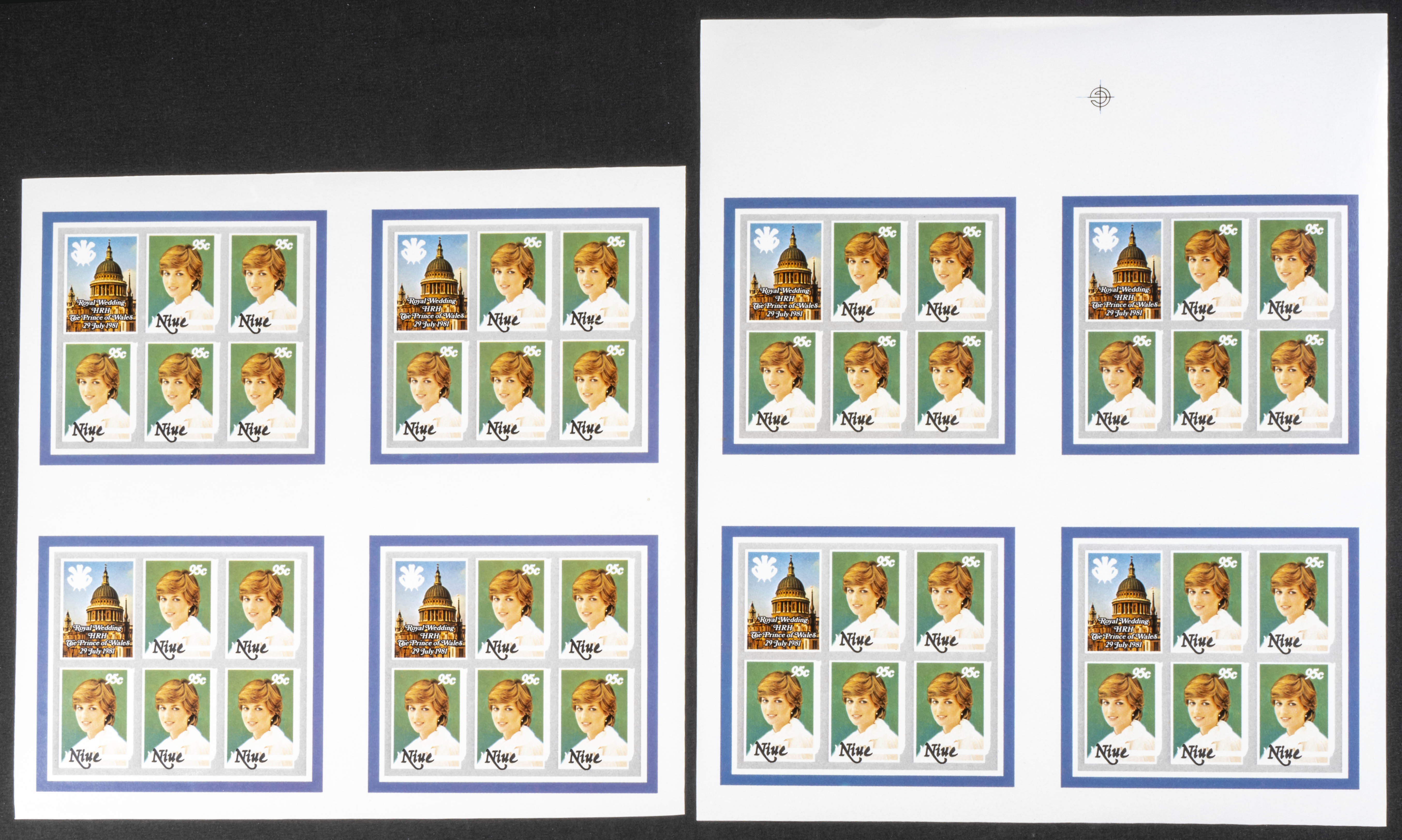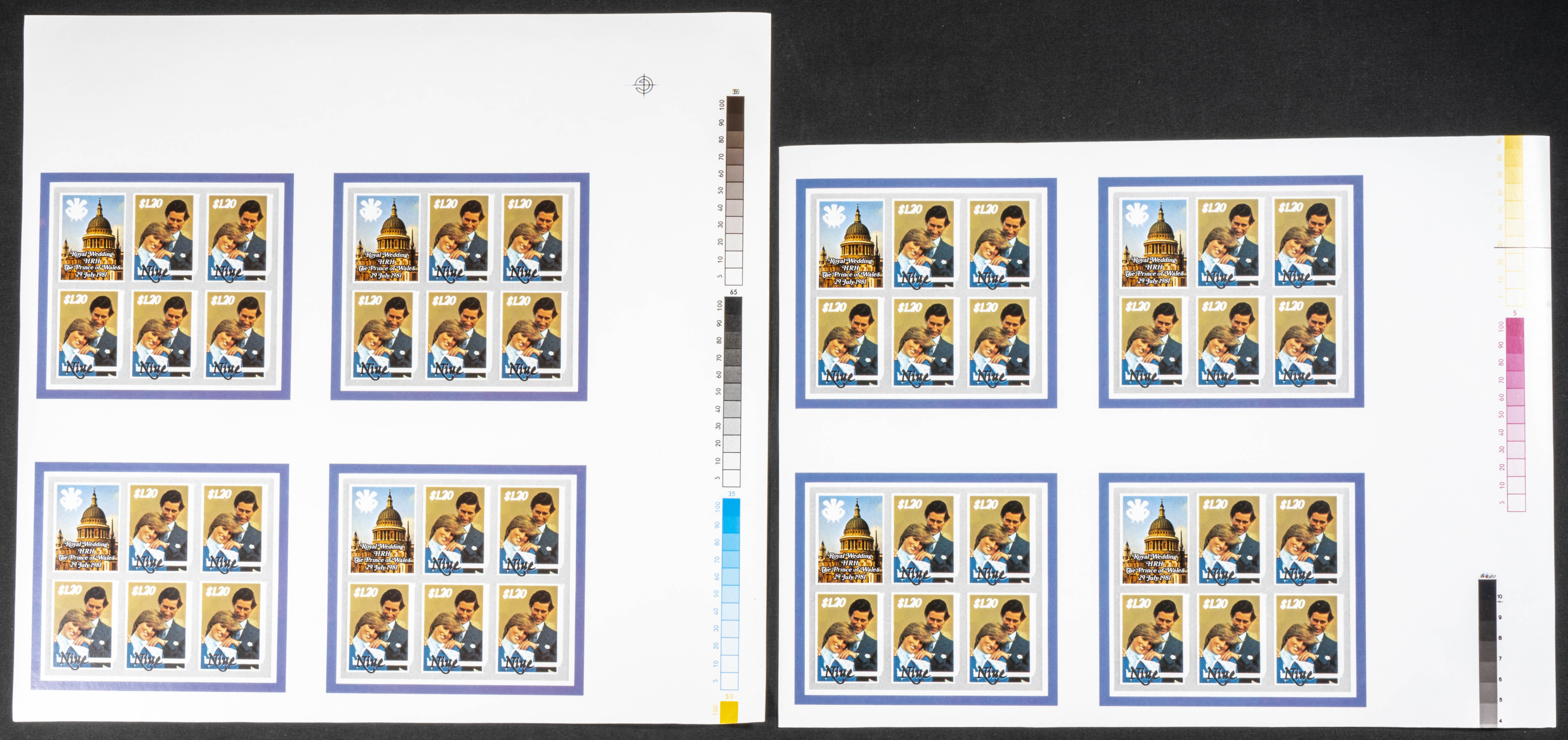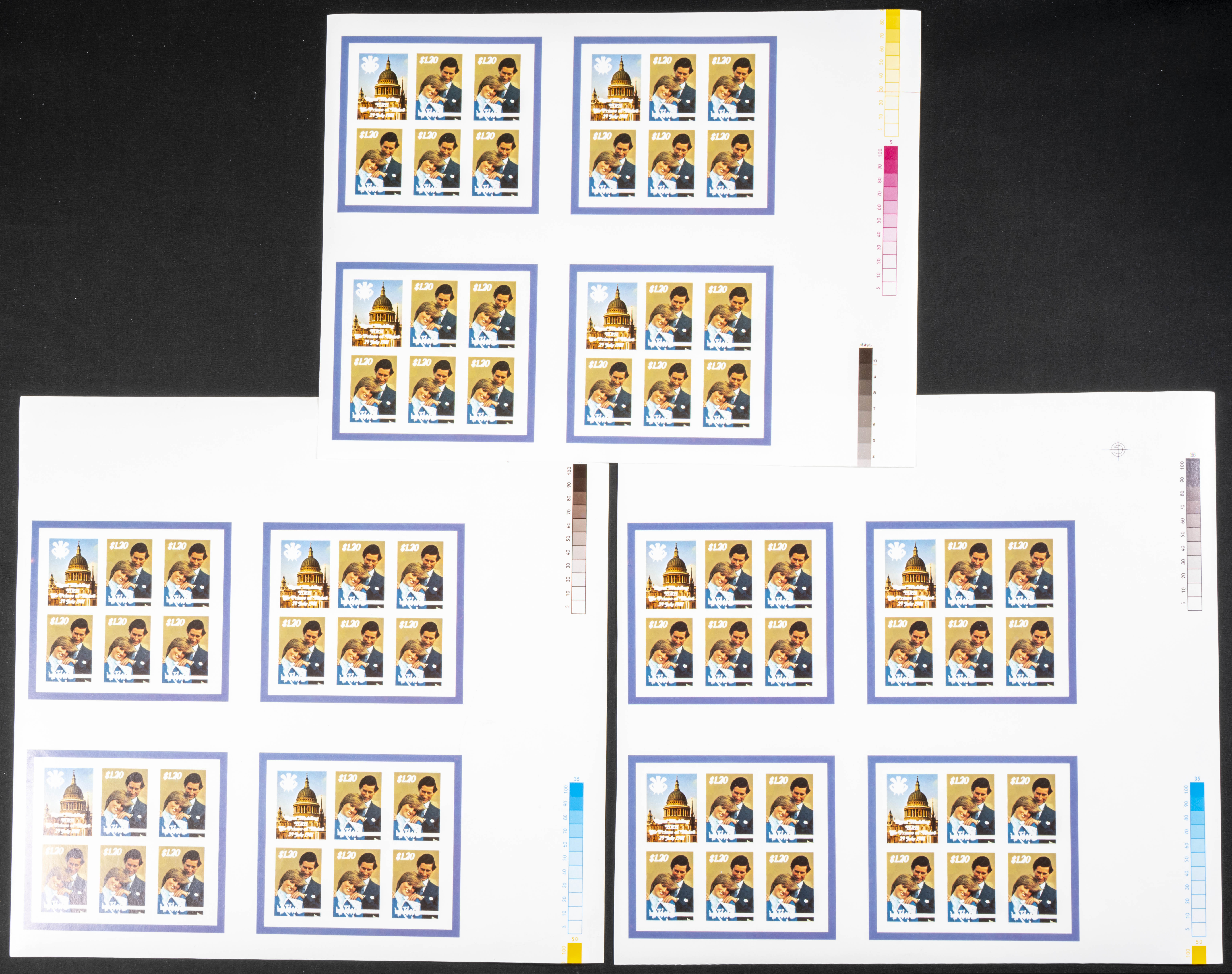 ★★Yvert 343/45. 1981. Charles & Diana wedding. Group of progressive plate proofs of the set. TO EXAM.